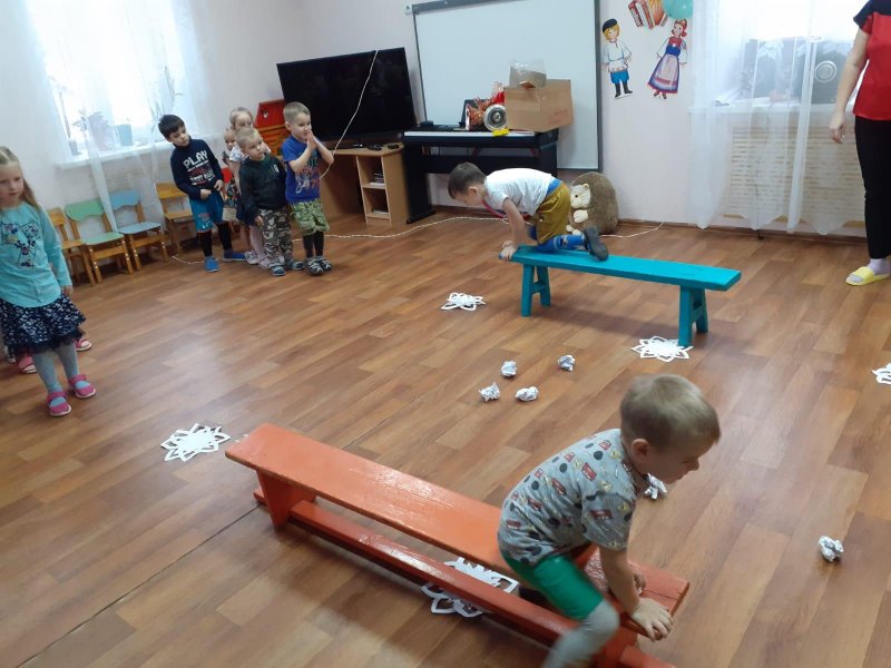 В рамках месячника "Тонкий лёд - 2022" с целью охраны жизни и здоровья детей и закрепления знаний о правилах поведения на водоемах в период ледостава для ребят старшей и 2-ой младшей группы было проведено физкультурное развлечение "Осторожно, тонкий лёд".