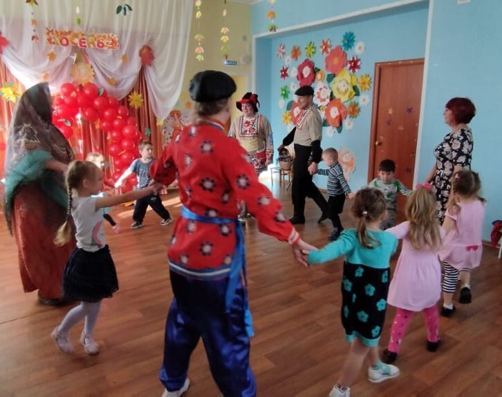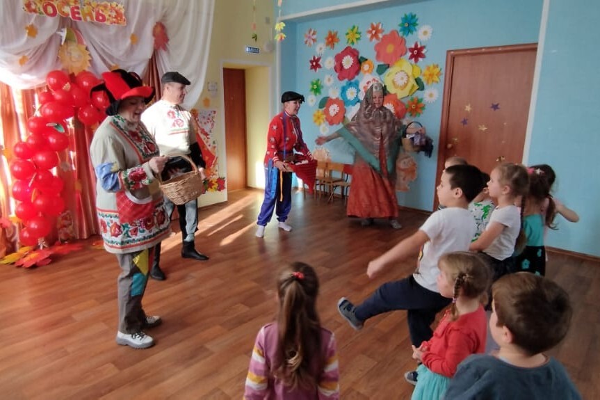 С целью формирования чувства любви к своей Родине на основе приобщения детей к народной культуре и традициям, интереса к прошлому и настоящему своей страны и в рамках социального партнёрства, 1 ноября 2023 года работники МКУК Мезиновское ЦКО в очередной раз посетили наших ребят. В этот раз сотрудники Мезиновского ДК привезли в детский сад Осеннюю ярмарку.