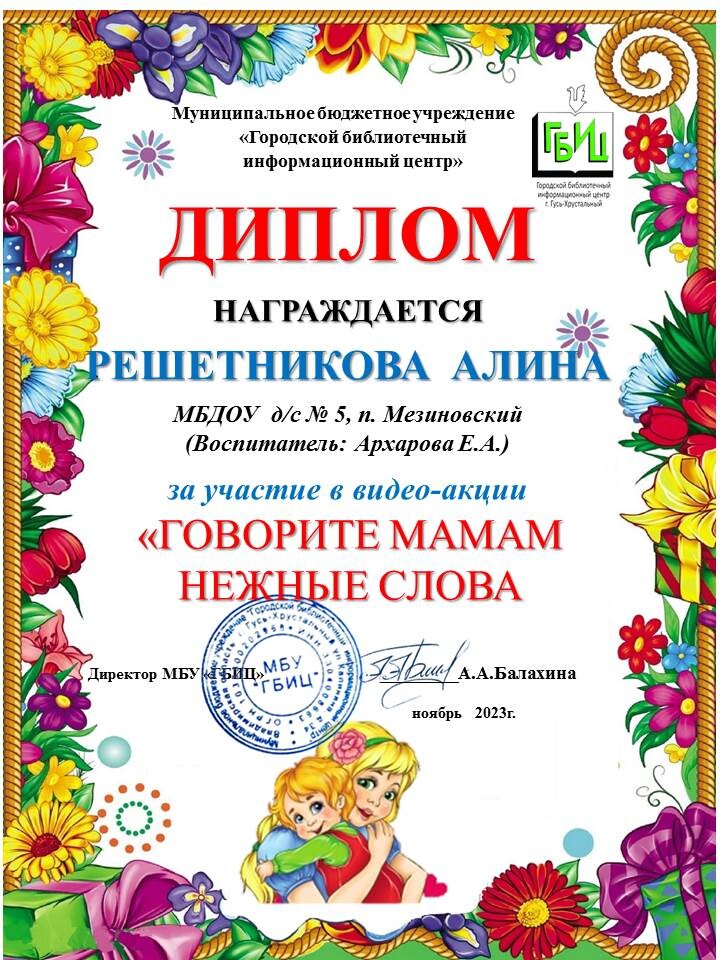 В преддверии Всероссийского праздника "День Матери" Городской библиотечный информационный центр объявил видео-акцию «ГОВОРИТЕ МАМАМ НЕЖНЫЕ СЛОВА». Для участия в акции необходимо было записать видеопрочтение стихотворения, посвященного мамам, бабушкам. Наши ребята не остались в стороне и тоже приняли участие в этом мероприятии. Дети в своих стихотворениях выражали слова благодарности своим мамам.