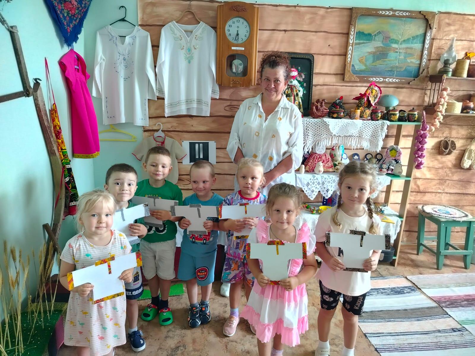В рамках социального партнёрства 17 июля 2024 года сотрудники МБУК "Мезиновское ЦКО" провели для ребят 2-ой младшей-средней группы творческий урок "Укрась косоворотку", приуроченный к празднику День русской косоворотки.