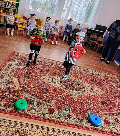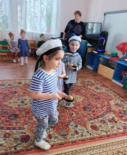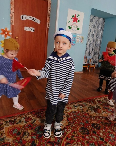 Настроение у детей было очень торжественным. Они с полной самоотдачей выполняли все предложенные им задания. Дети пели замечательные песни, посвященные празднику и исполнили танец "Моряки" .