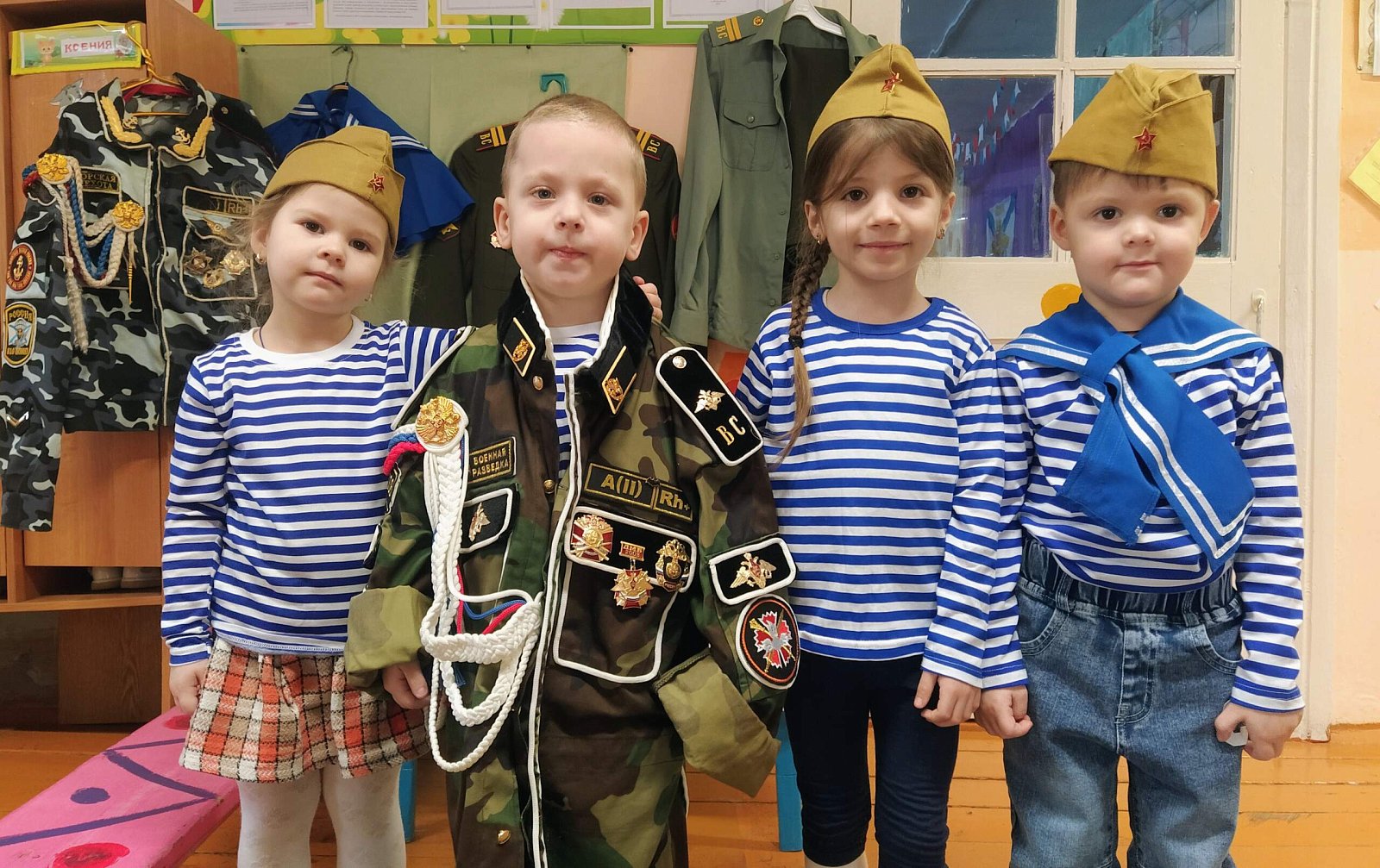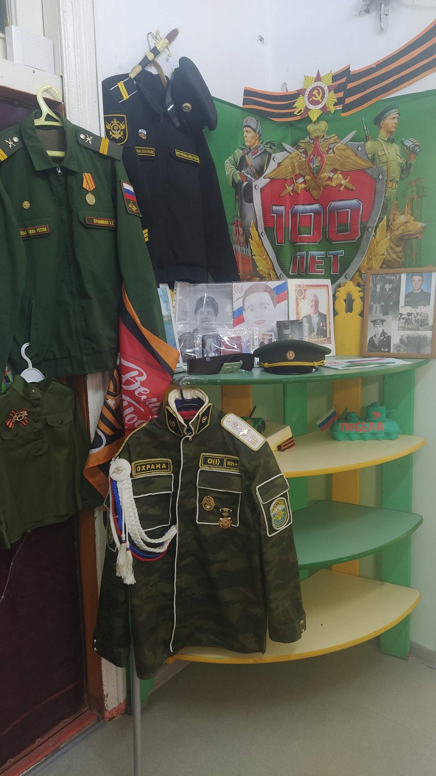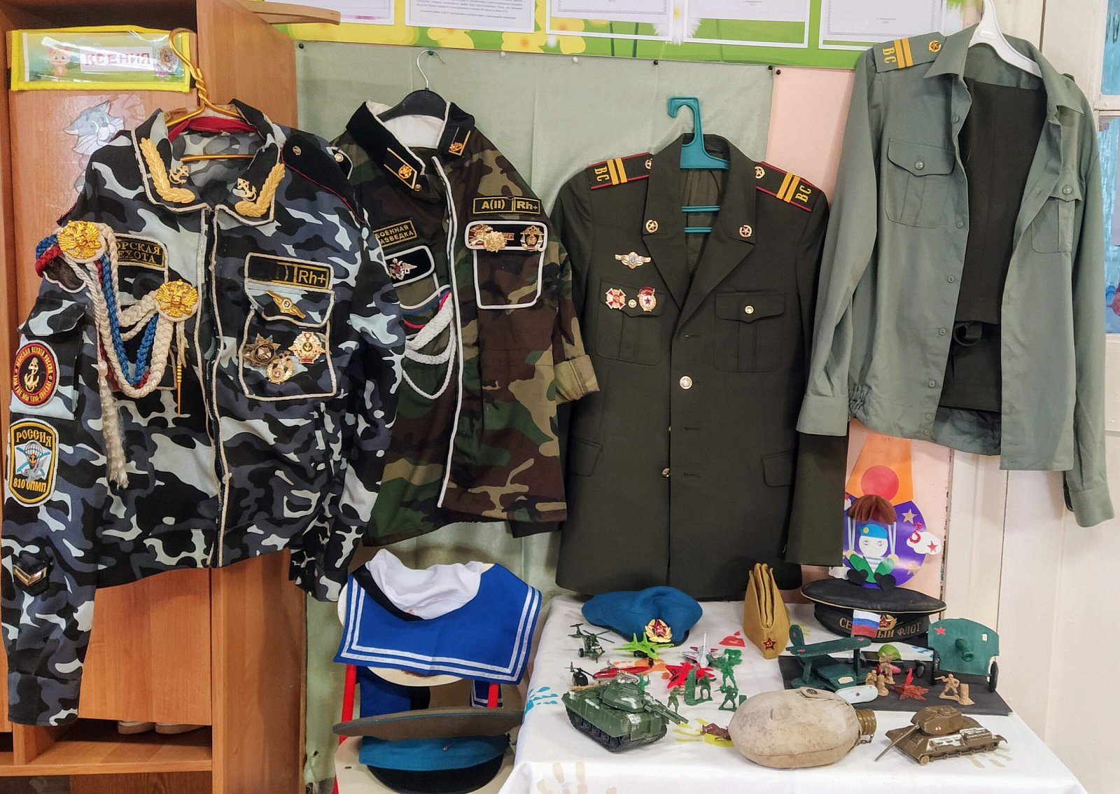 ???????? В преддверии дня Защитника Отечества стараниями воспитателей, родителей и детей в нашем саду была организована выставка "Наша армия сильна"????, которая была направлена на формирование патриотического духа у детей. Экспонатами выставки стали военная одежда, фотографии родственников наших воспитанников, кто проходил службу в рядах советской армии, рисунки и поделки ребят.