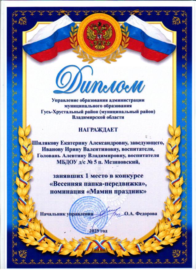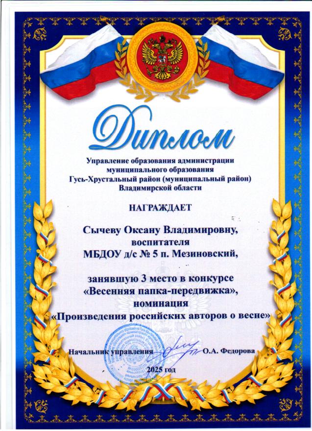 В период с 3 по 28 февраля 2025 года управлением образования администрации Гусь-Хрустального района был организован конкурс профессионального мастерства педагогов «Весенняя папка-передвижка», в котором приняли участие 16 образовательных учреждений Гусь-Хрустального района.