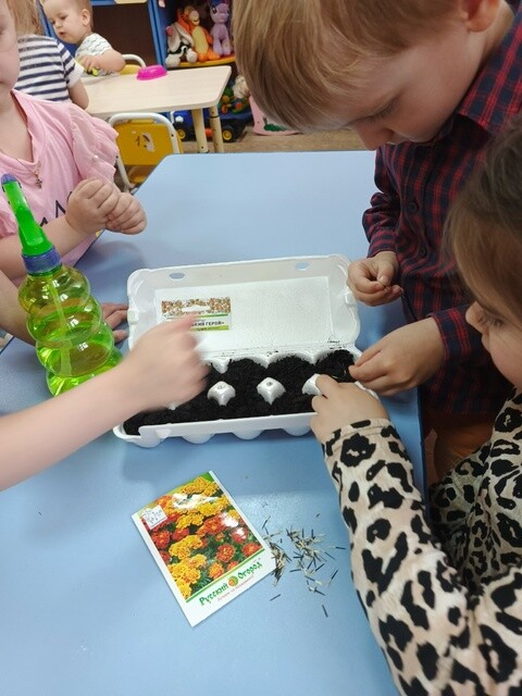 Ребята вместе с воспитателями посадили в контейнеры семена самых распространенных культур: укропа, петрушки, томатов, огурца. Не забыли и про садовые цветы , рассада которых будет высажена в клумбы для украшения участка нашего сада. А чтобы пополнить запас витаминов в своём организме и защитить его от вирусов, дошколята посадили лук , который потом будут добавлять в суп.