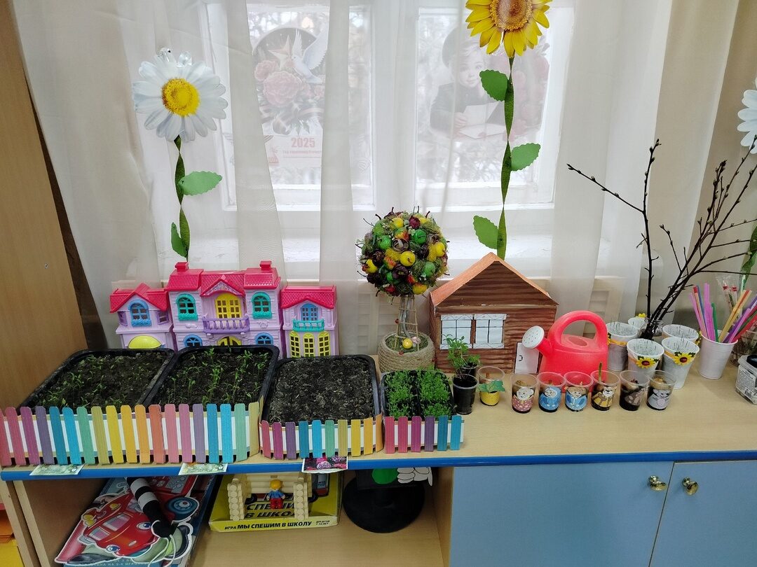 Каждый год, весной, воспитатели с детьми организуют огород на окне ????, целью которого является вовлечение детей в практическую деятельность по выращиванию культурных растений , а также развитие интереса к исследовательской работе.