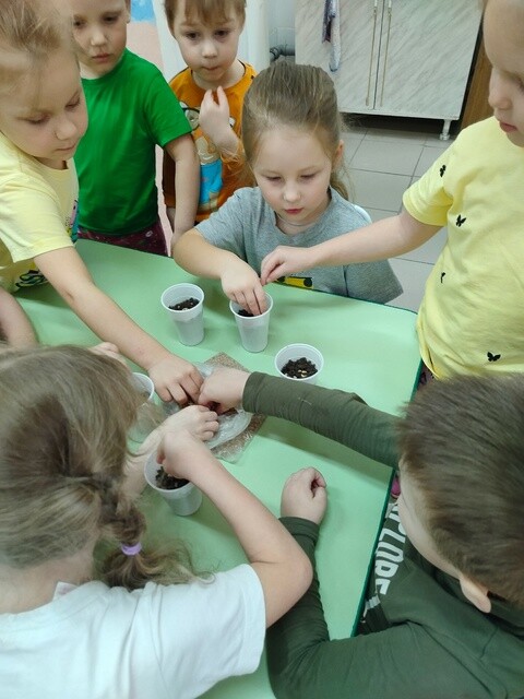 Дети с удовольствием и большим энтузиазмом принимали участие в посадке огорода. Теперь мы будем с нетерпением ждать и наблюдать, когда появятся первые ростки. Совместными усилиями мы создаем красивый и вкусный урожай на окне.