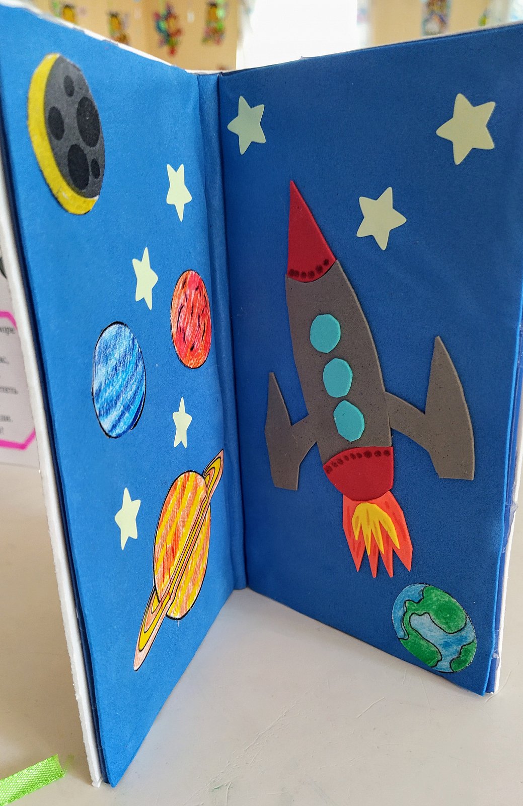 В конкурсе принимали участие воспитанники всех возрастных групп. На суд жюри были представлены 7 работ. Книжки - малышки получились очень яркие, красочные и познавательные! для изготовления работ был использован различный материал: фоамиран, картон, цветная бумага, декоративные украшения (планеты, звезды, космонавты). В книжках можно прочитать много интересных стихотворений и загадок о космосе, информацию о космонавтах и о планетах.