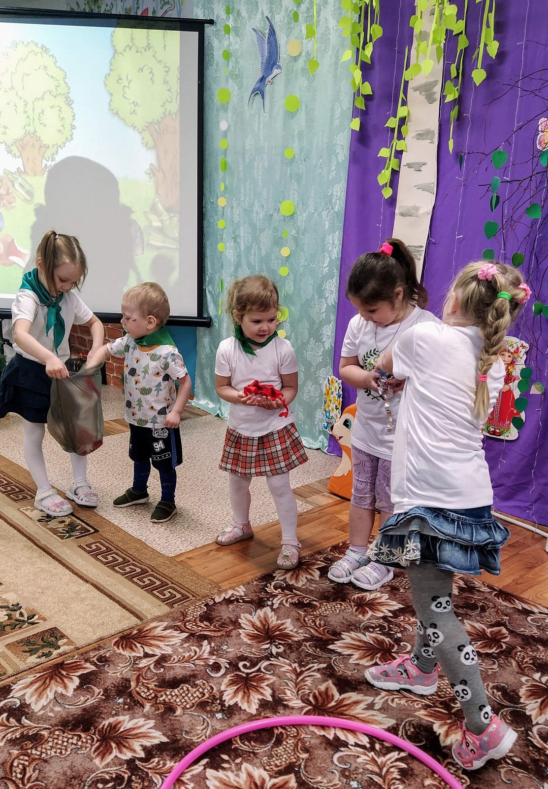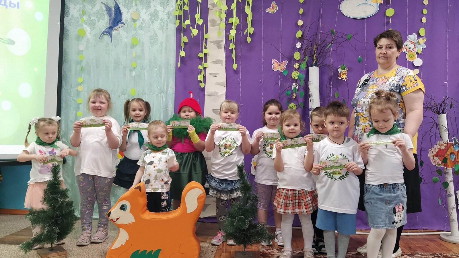 В экологическом празднике приняли участие воспитанники разновозрастной группы. Педагоги организовали праздник в виде квест-игры, где ребята отправились в путешествие по лесным станциям. Дети выступили в роли юных экологов, а на протяжении всего мероприятия им помогала Умница - одна из героев Эколят. Мальчишки и девчонки повторили правила поведения на природе, определяли домишки для животных, птиц и насекомых, собирали и сортировали мусор, очищали воду от примесей и грязи, собирали ягоды. В завершении мероприятия дети произнесли клятву Эколят и получили удостоверение Эколенка.