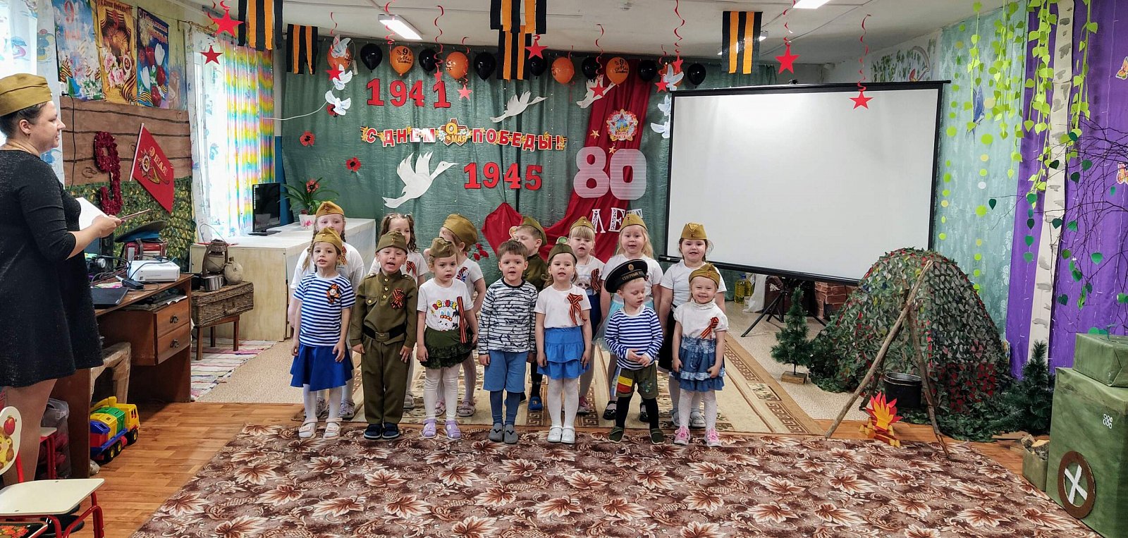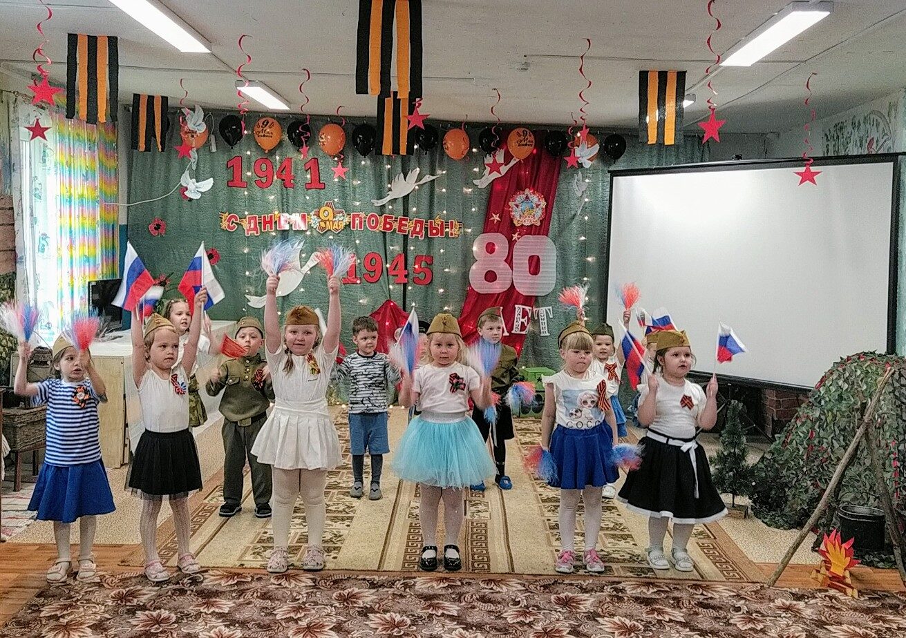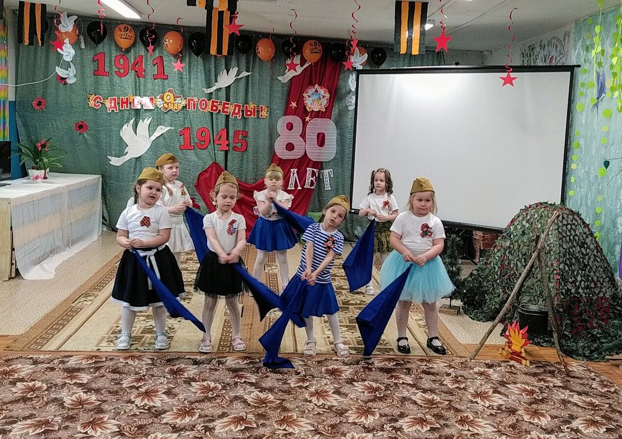 Праздник, посвященный Дню Победы, прошел 7 мая 2025 года в нашем детском саду. Его участниками стали дети разновозрастной группы. Праздник был подготовлен с целью формирования у детей знаний о Великой Отечественной войне, обогащения знаний дошкольников об истории своей страны, развития творческих способностей детей, а также воспитания чувства гордости за героизм нашего народа.