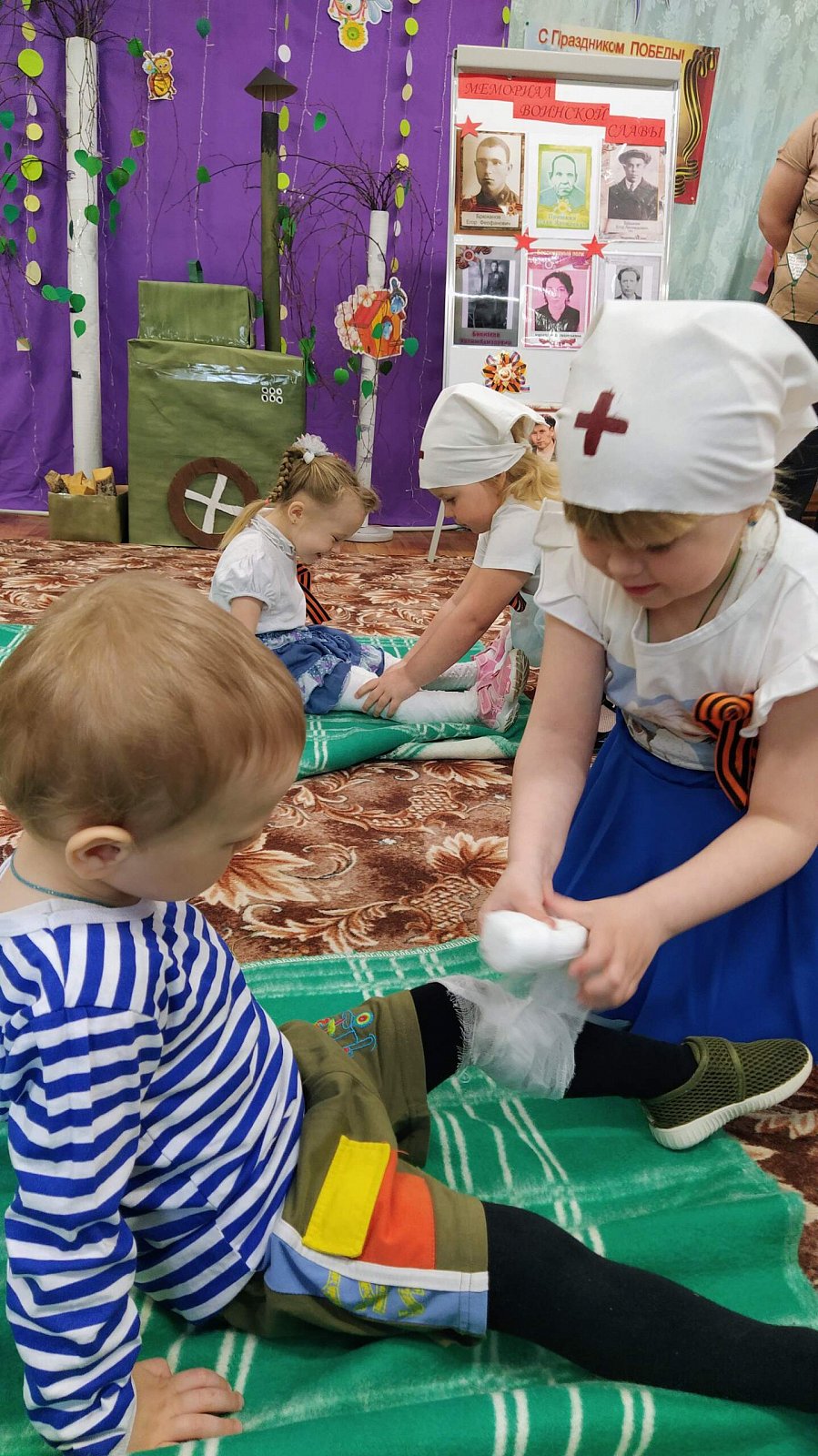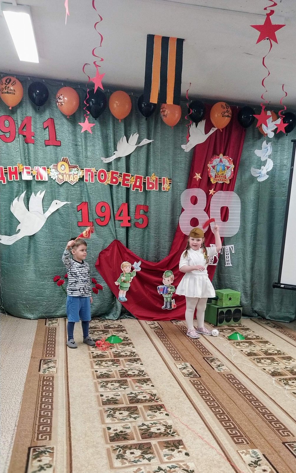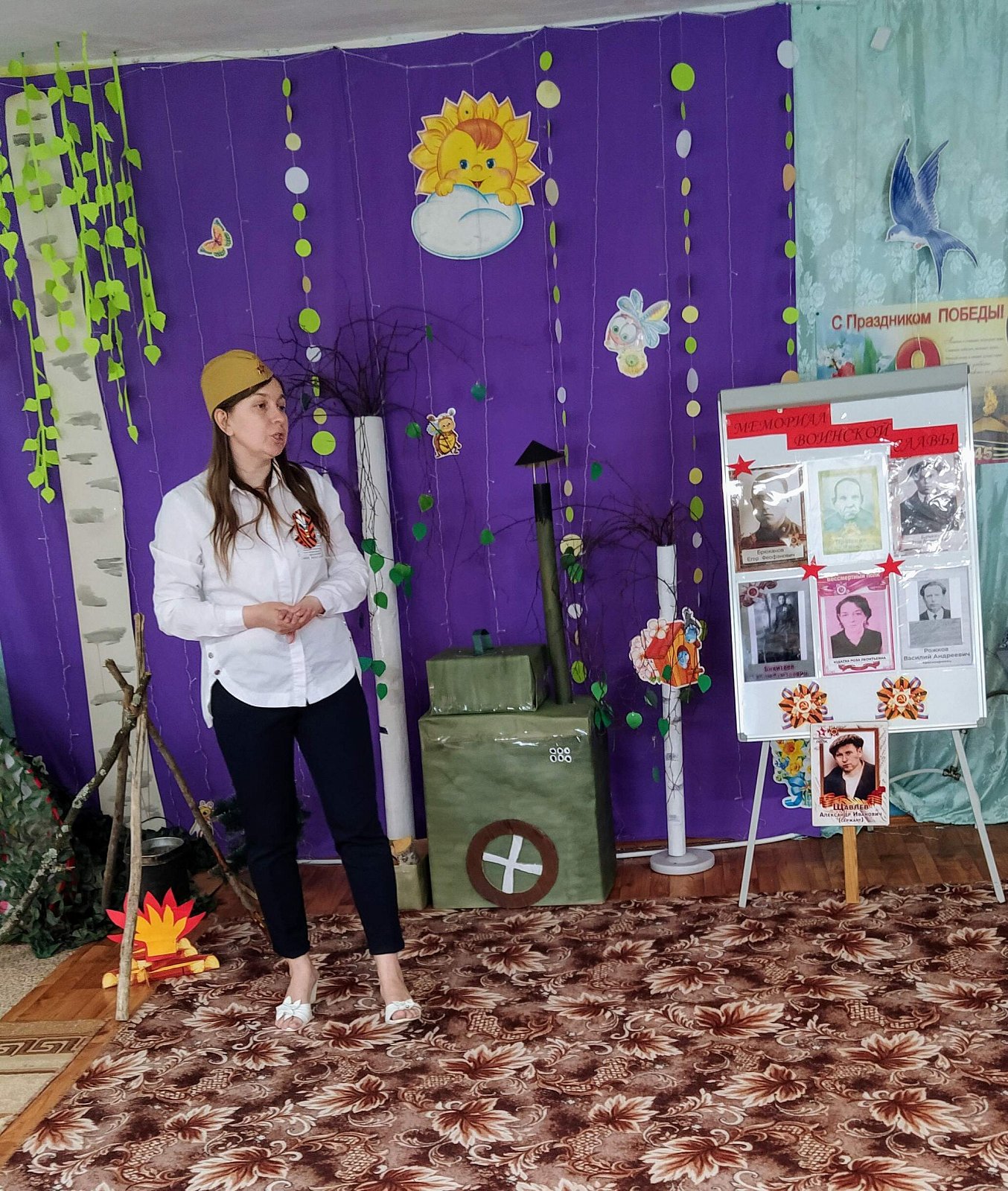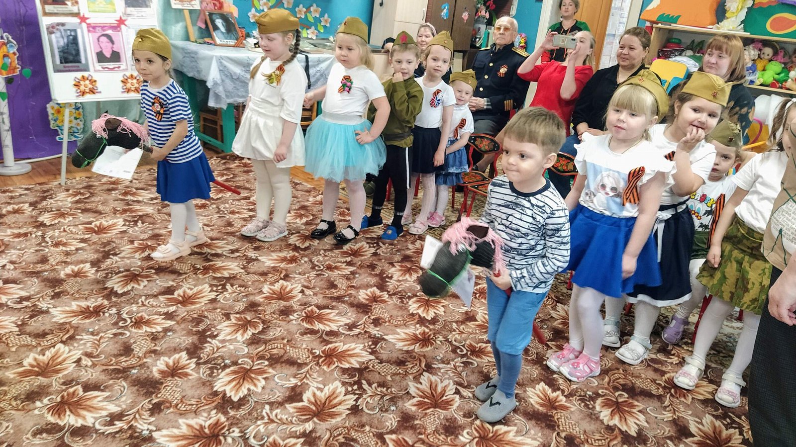 На праздник в качестве почетного гостя был приглашен бывший сотрудник нашего детского сада, а нынче пенсионер, имеющий статус "ребенок войны" Кнутов Владимир Васильевич, музыкальный руководитель. Он рассказал ребятам о своем тяжёлом детстве во время войны, о своем отце, который ушёл защищать нашу Родину. ????????