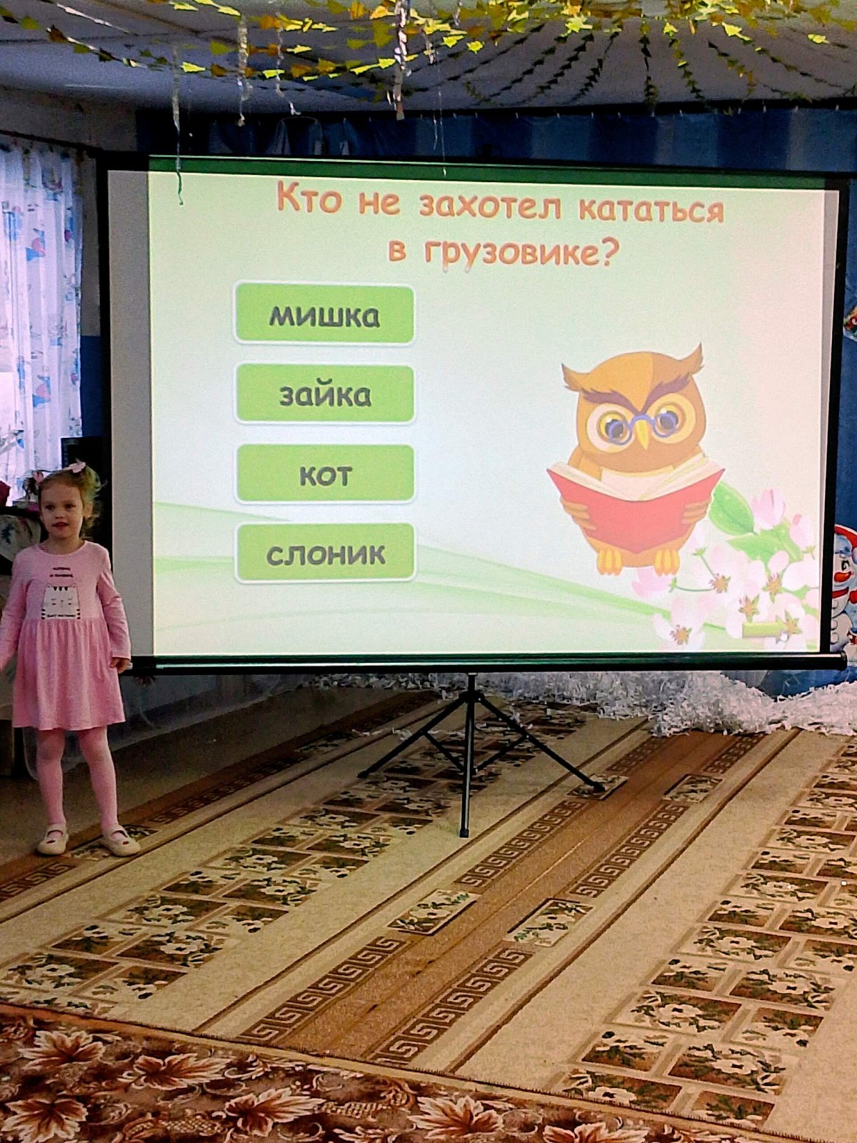 Завершилось мероприятие веселой викториной по произведениям А.Л.Барто. Детям предстояло вспомнить строки известных стихотворений и угадать персонажей сказочных историй. Увлеченные дети активно отвечали на вопросы и демонстрировали свои знания.
