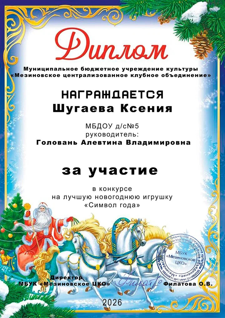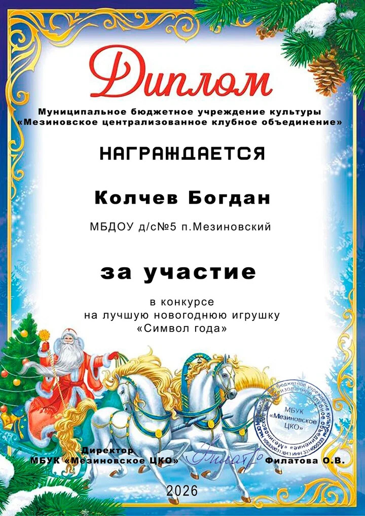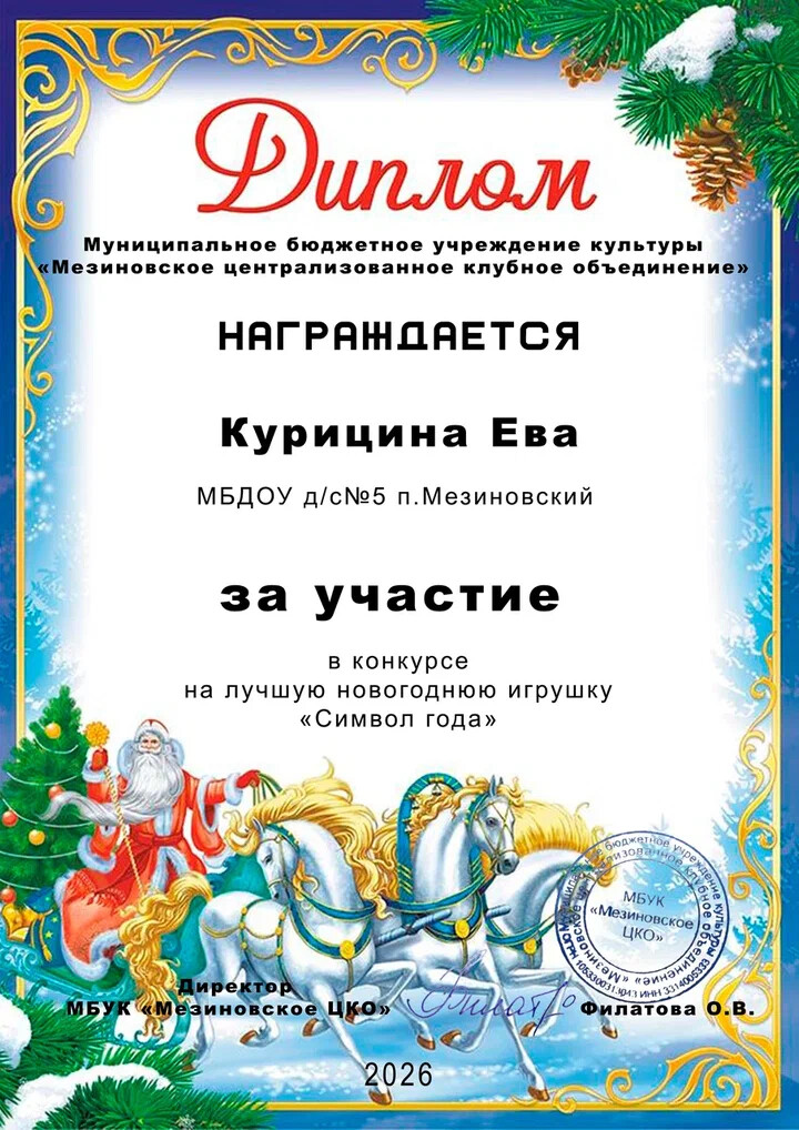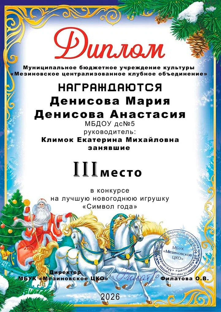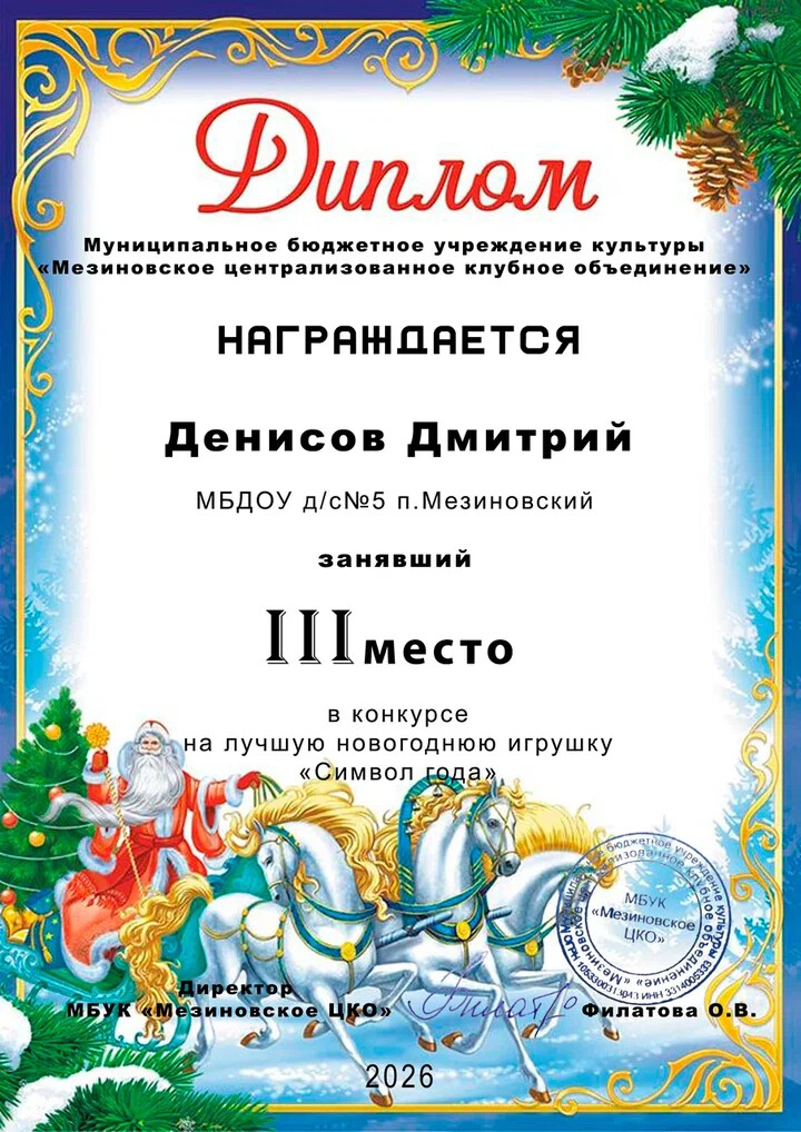 30 января был завершён конкурс «Символ года», который проводился МБУК Мезиновское ЦКО в преддверии Новогодних праздников. На сей раз конкурс был посвящён Огненной Лошади — символу энергии, свободы и стремительного движения вперёд.