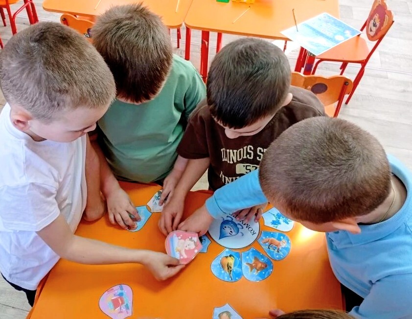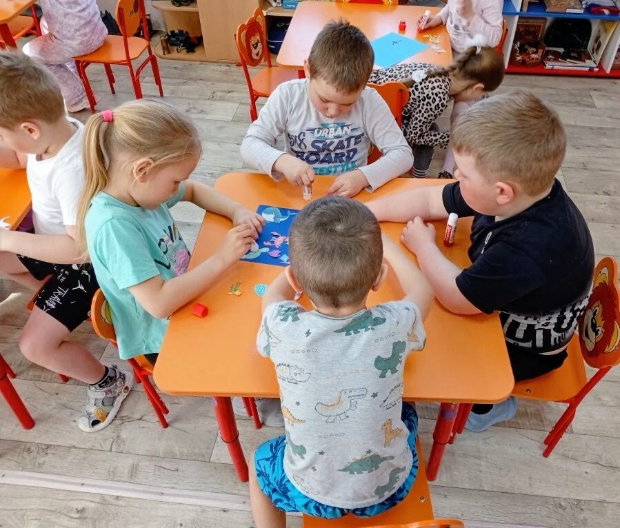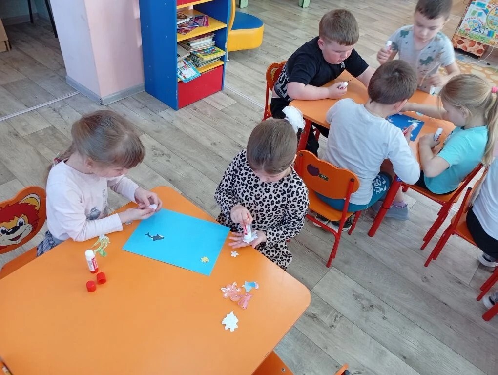 На занятии, объединившись в группы, наши маленькие исследователи заселяли созданный ими подводный мир разными животными и растениями, добавляя туда ярких рыбок, кораллы и водоросли. Это было настоящее творческое приключение.