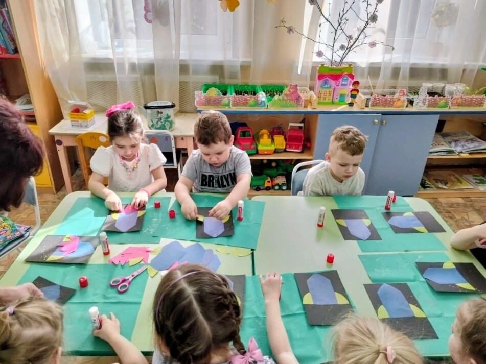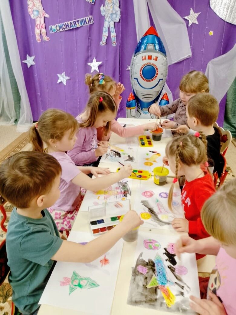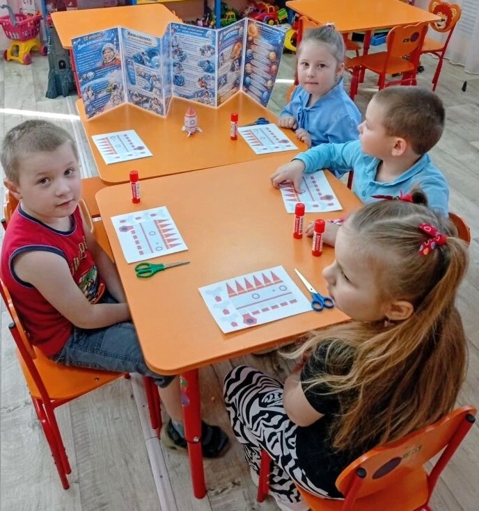 Во время занятия каждый ребенок проявил свою фантазию и творчество. Дети аккуратно наклеивали детали своих космических кораблей, раскрашивали свои творения яркими красками и гордились результатом своего труда.