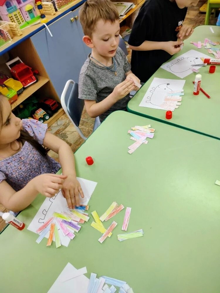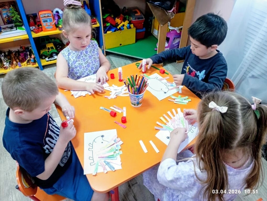 Но не только теоретические знания получили малыши! После презентации ребята приняли участие в творческой мастерской, где создали очаровательные аппликации «Ёжик из полосок». Под руководством педагогов дети вырезали полоски бумаги, аккуратно наклеивали их на картон, создавая объёмные изображения ежиков. Это позволило детям проявить свою фантазию и развить мелкую моторику рук.