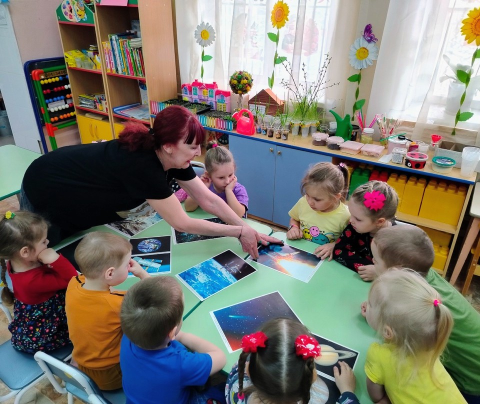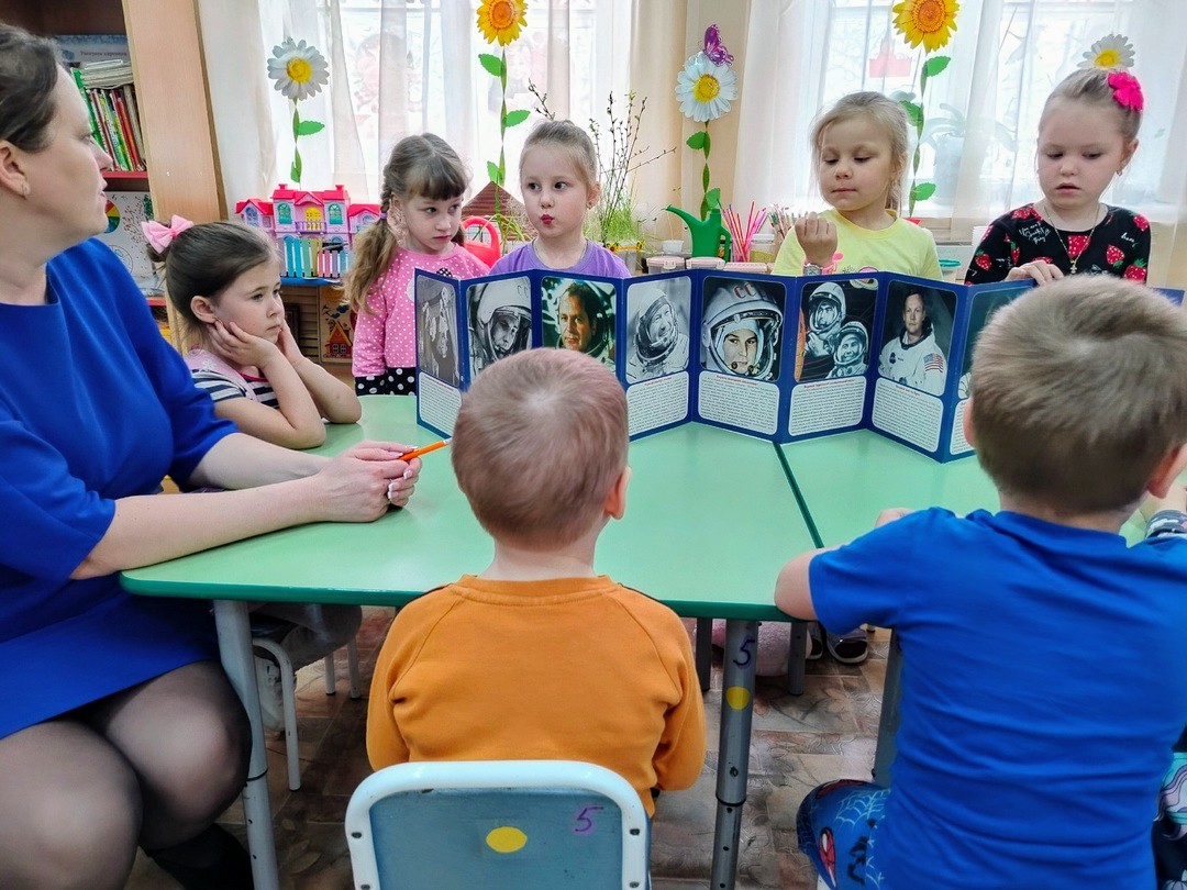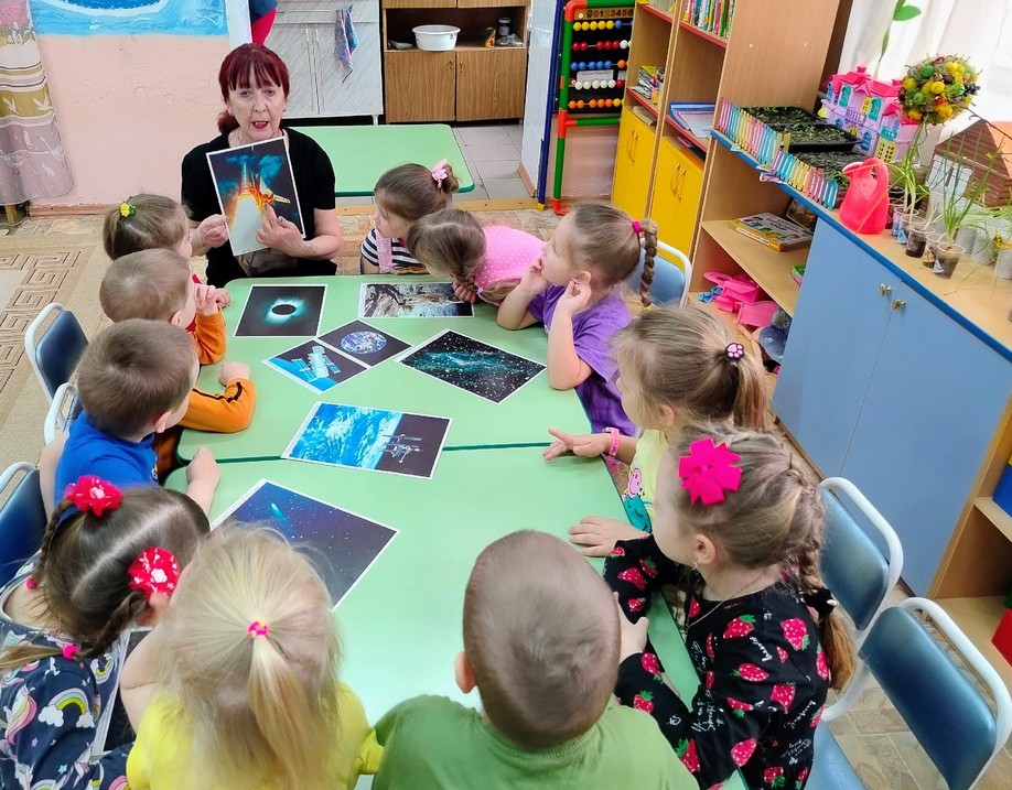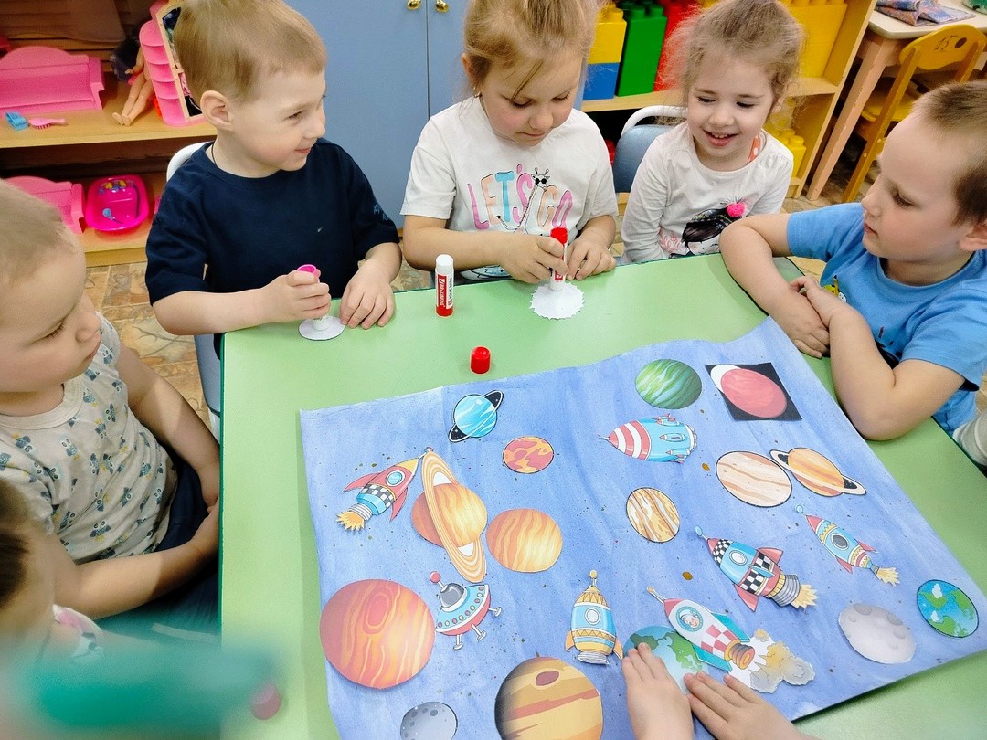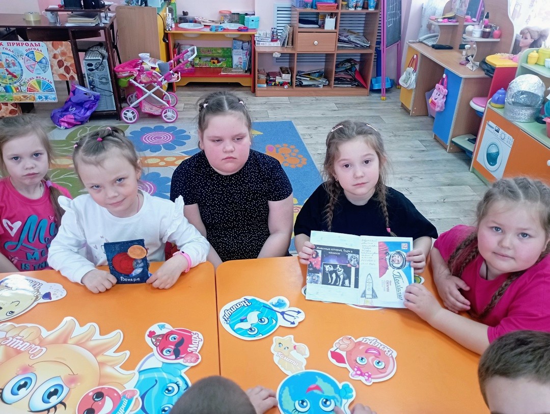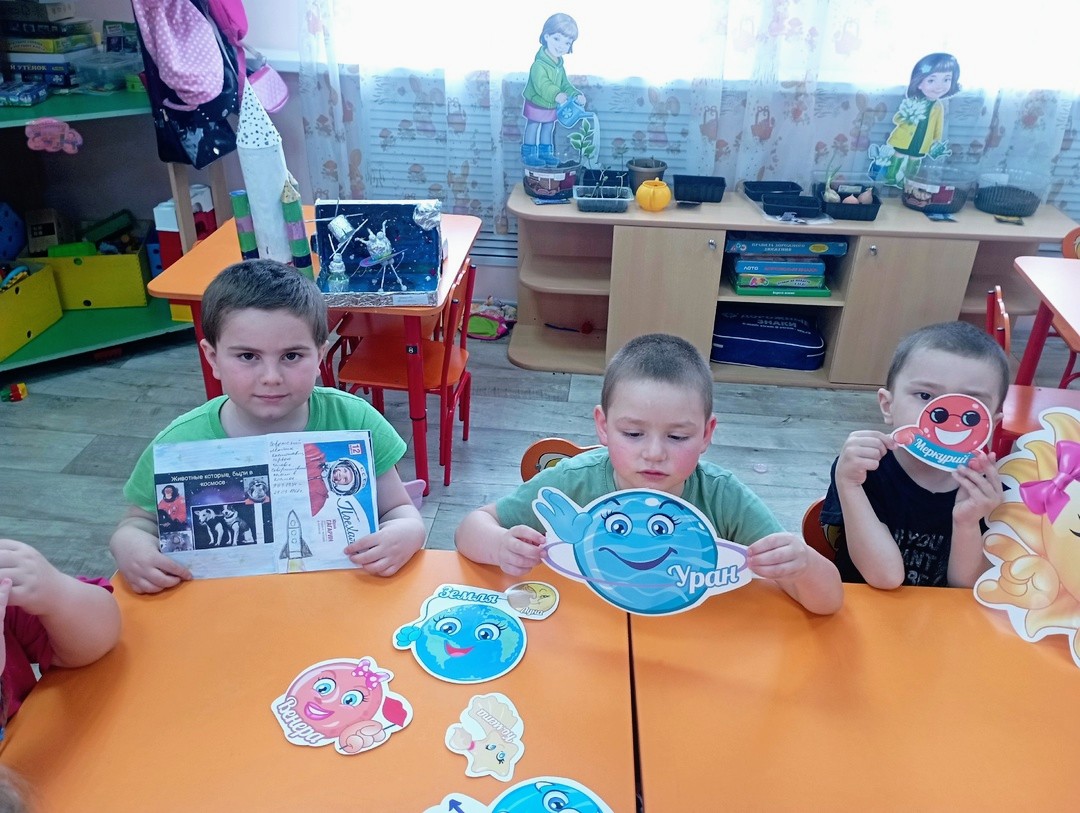 В период с 7 по 11 апреля во всех возрастных группах прошла тематическая неделя, посвященная Дню космонавтики. Воспитанники познакомились с информацией о первом полете человек в космос, узнали какие животные побывали в космосе. Особенно заинтересовал их рассказ о собаках – «космонавтах»: Лайке, Белке и Стрелке. Для детей был организован просмотр интересных тематических презентаций и мультфильмов. Для расширения кругозора воспитатели использовали иллюстрации о планетах и спутниках, космонавта, созвездиях.