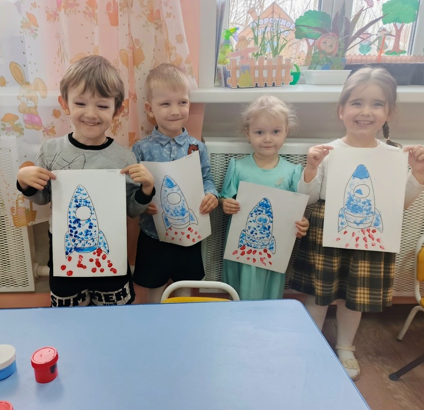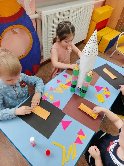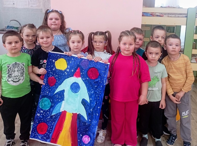 В рамках социального партнёрства сотрудником МБУК Мезиновское ЦКО для воспитанников старшей (2-х возрастной) группы был проведен творческий урок "Полёт в космос". В ходе занятий ребята проявляли свою фантазию, выполняя рисунки и аппликации ракет, планет, инопланетян. На занятиях по физическому развитию и конструированию дошколята строили свои космические корабли, выполняли космическую гимнастику.