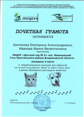 Участие педагогов в межрегиональном конкурсе для педагогов на лучший мультфильм "Всем на свете нужен дом" в рамках всемирного дня защиты животных