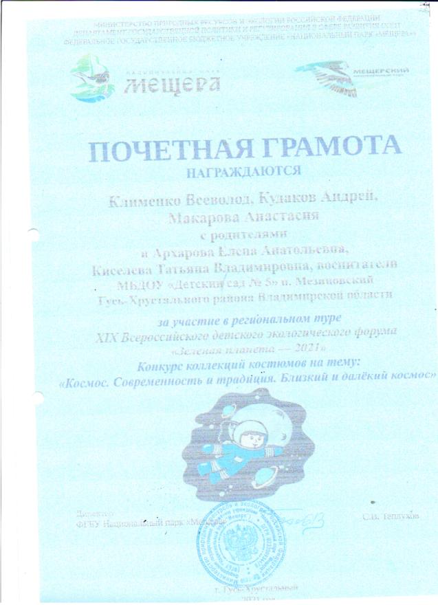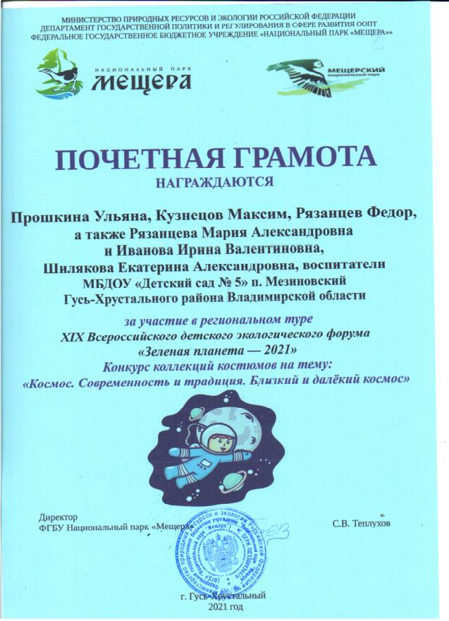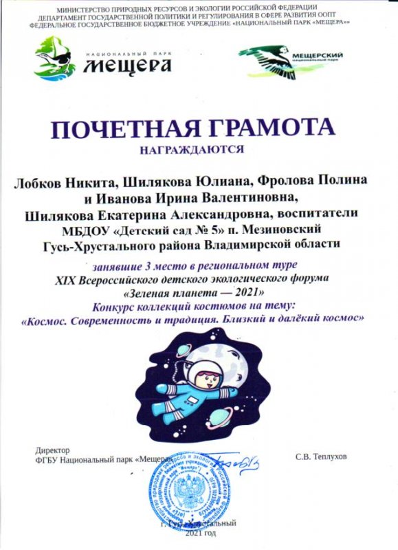 Участие воспитанников и педагогов в региональном туре XIX Всероссийского детского экологического форума "Зеленая планета - 2021" . Конкурс коллекций костюмов на тему: "Космос. Современность и традиция. Близкий и далекий космос".