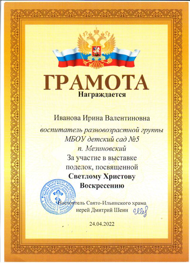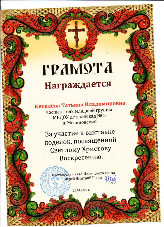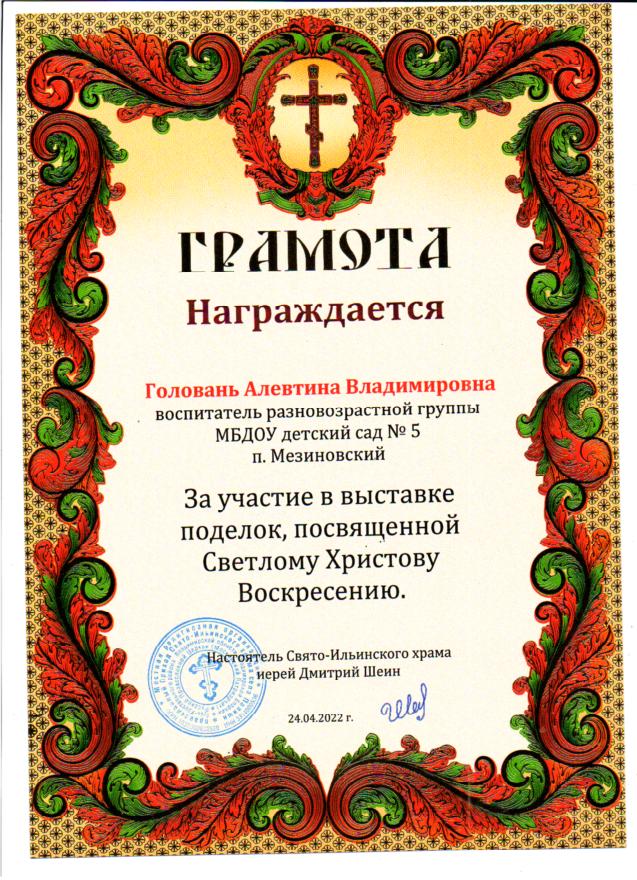 Участие воспитанников, педагогов и родителей в выставке поделок, организованной Свято- Ильинским Храмом с. Палищи и посвященной Светлому Христову Воскресению