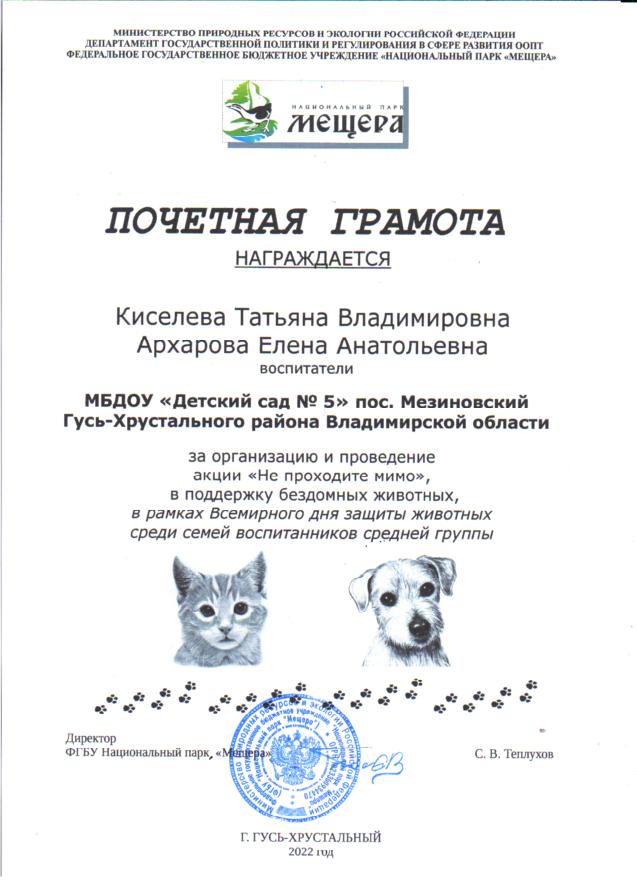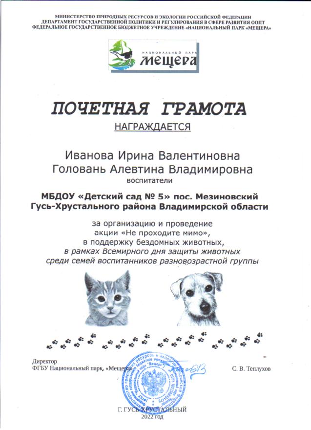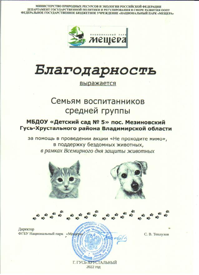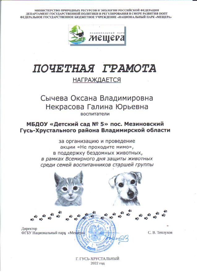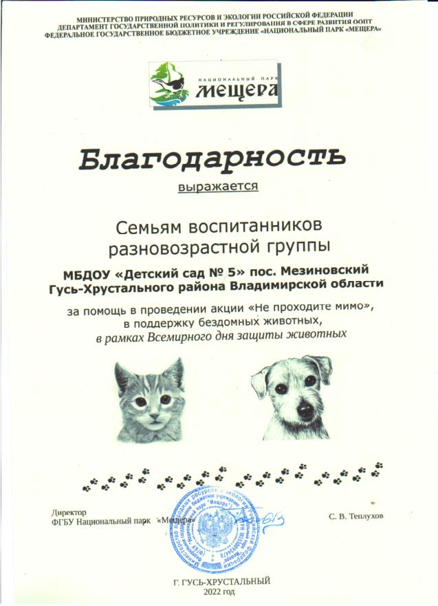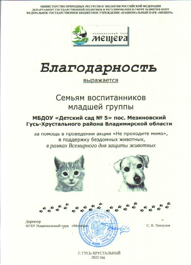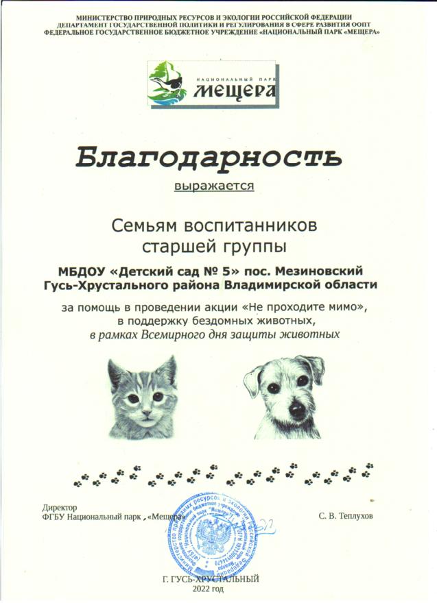 участие педагогов, воспитанников и их родителей в акции НП "Мещера" "Не проходите мимо" в поддержку бездомных в рамках всемирного Дня защиты животных.