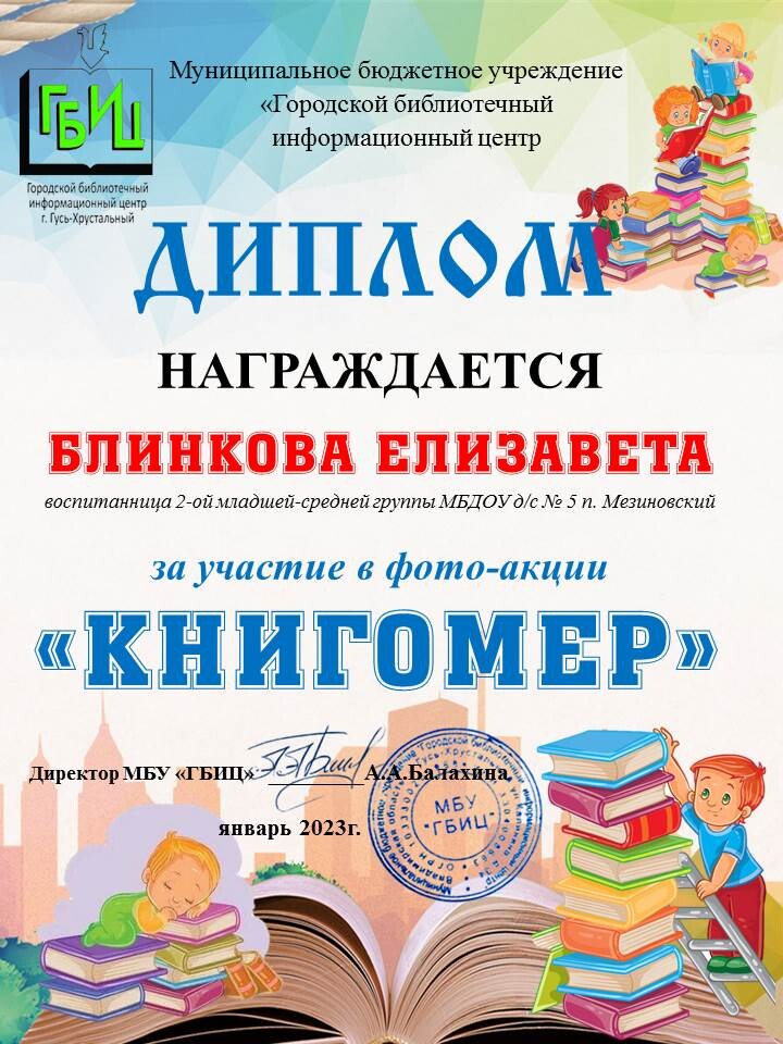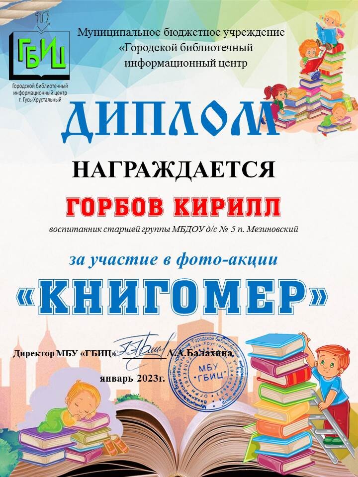 участие воспитанников в фото-акции "Книгомер, организованной МБУ ГБИЦ г. Гусь-Хрустальный