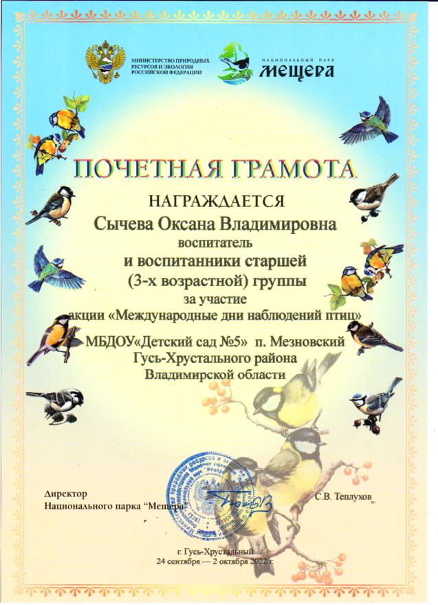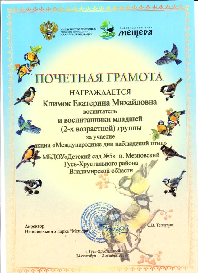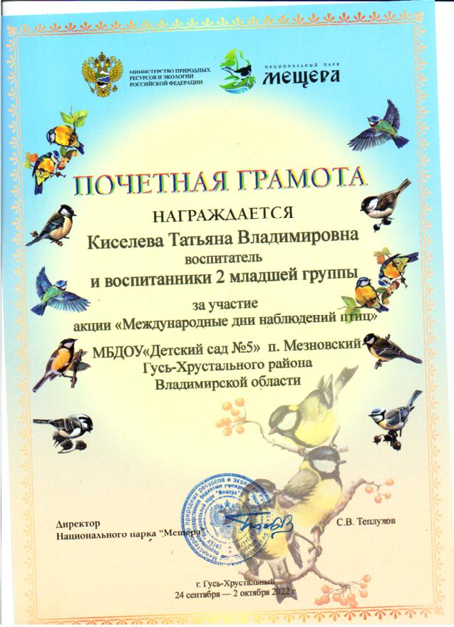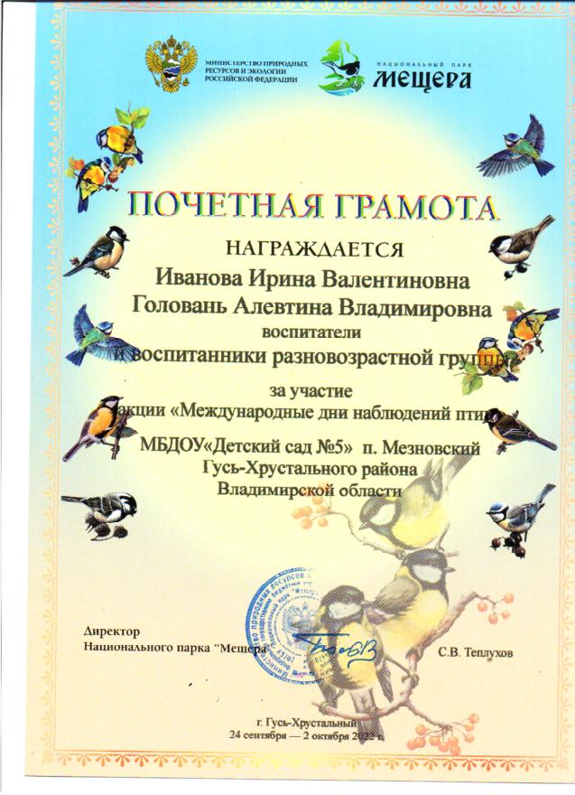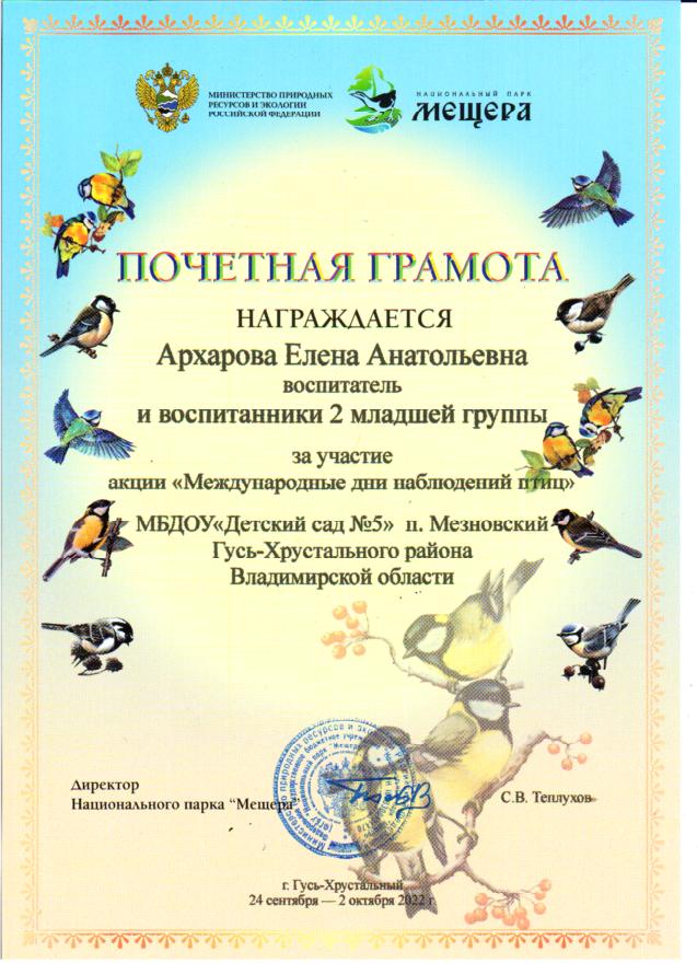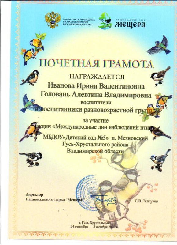 участие педагогов, воспитанников и их родителей в акции "Международные дни наблюдений птиц", организованной НП Мещера.