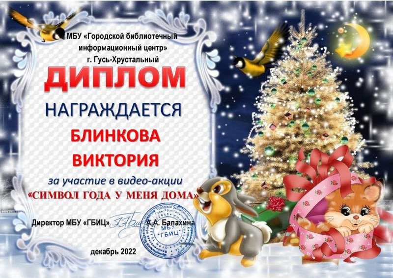 Участие воспитанников в видео - акции "Символ года у меня дома", организованной МБУ ГБИЦ г. гусь-Хрустальный