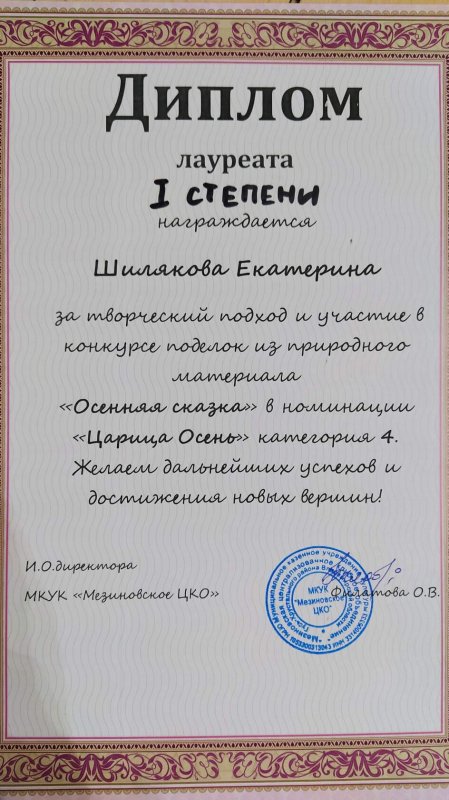 Участие педагогов, воспитанников и их родителей в конкурсе осенних поделок "Осенняя сказка", организованном МКУК "Мезиновское ЦКО"