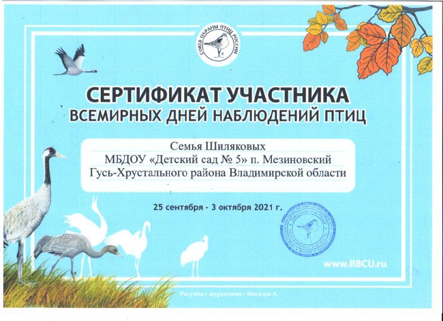 Участие педагогов, воспитанников и их родителей в акции "Международные дни наблюдений птиц", организованной НП Мещера