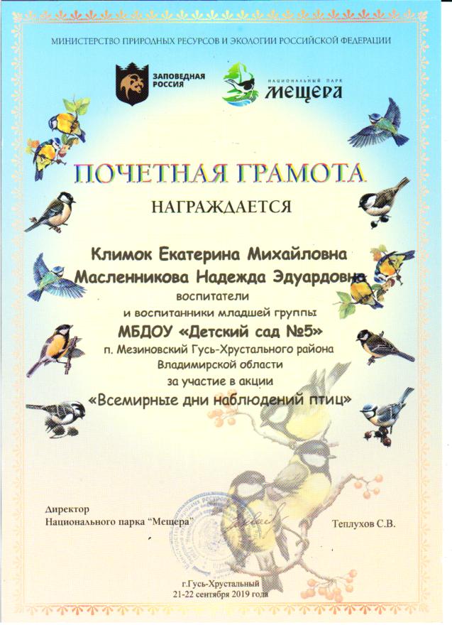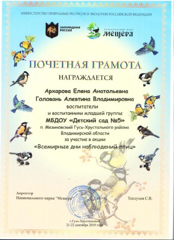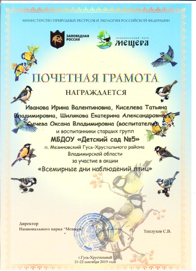 участие педагогов, воспитанников и их родителей в акции "Международные дни наблюдений птиц", организованной НП Мещера.