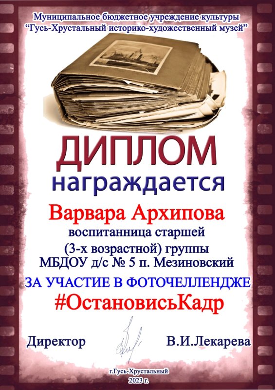 Участие воспитанников фоточеллендже «Остановись, кадр!», организованной Историко - Художественным музеем г. Гусь-Хрустальный и посвященный Декаде пожилого человека.