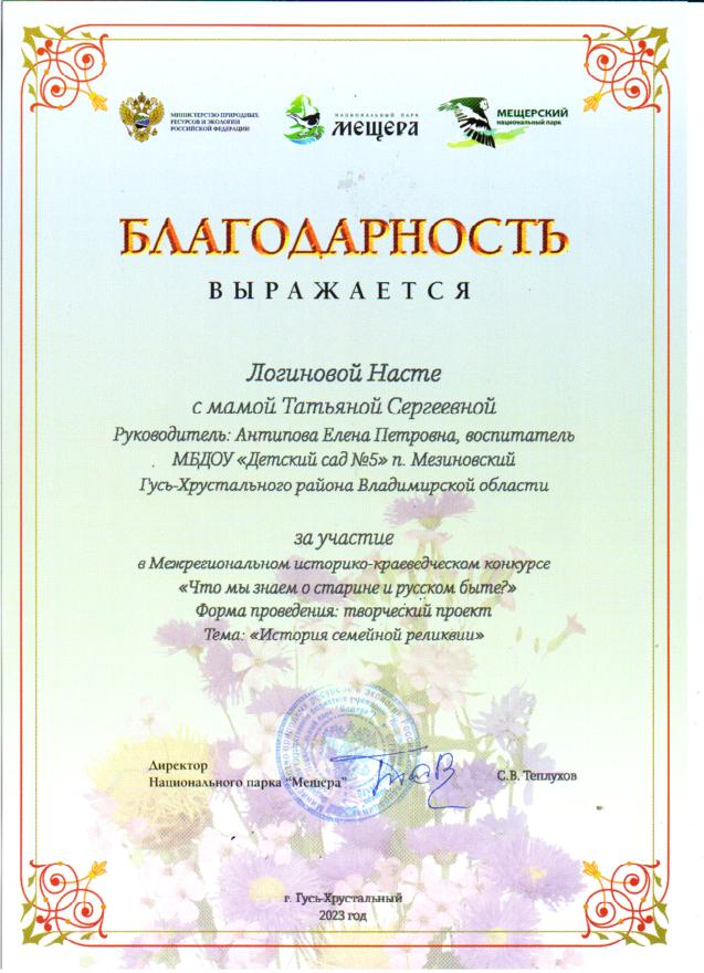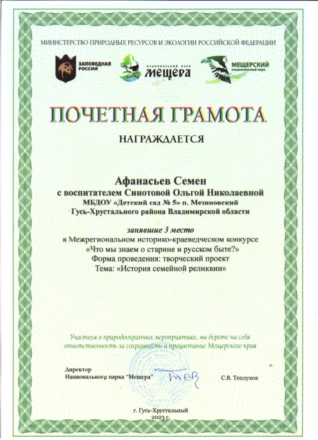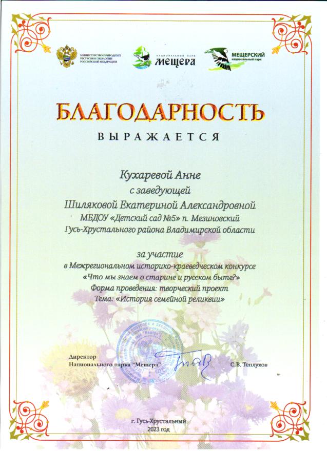 Участие воспитанников в межрегиональном конкурсе "История семейной реликвии", организованном НП "Мещера"