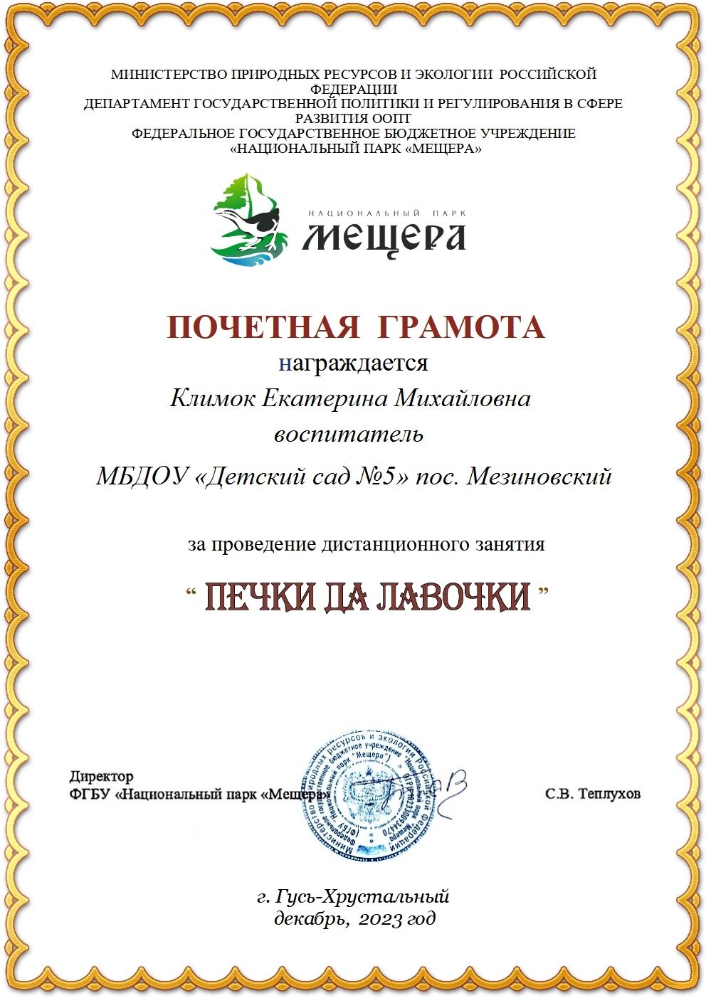 Проведение воспитателями дистанционного занятия «Печки да лавочки», разработанное ФГБУ Национальный парк «Мещера»