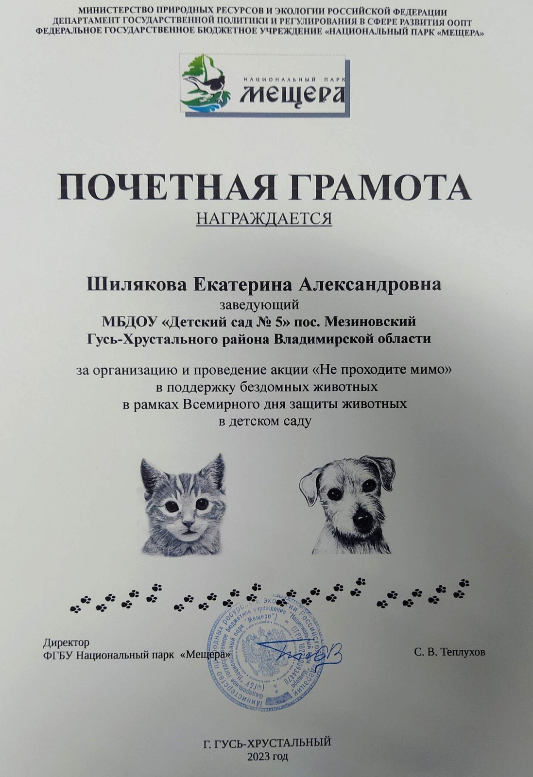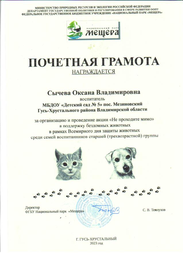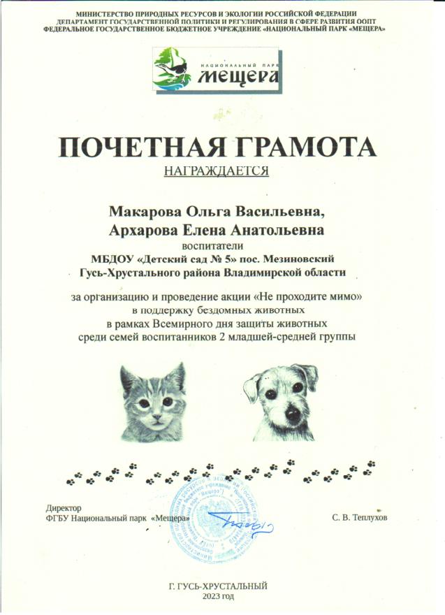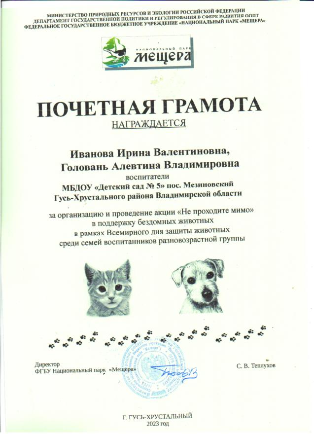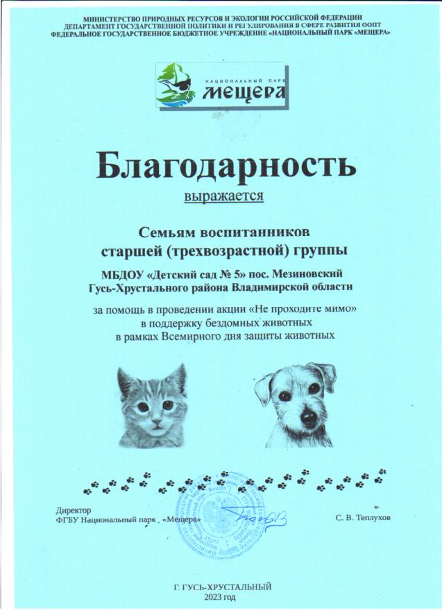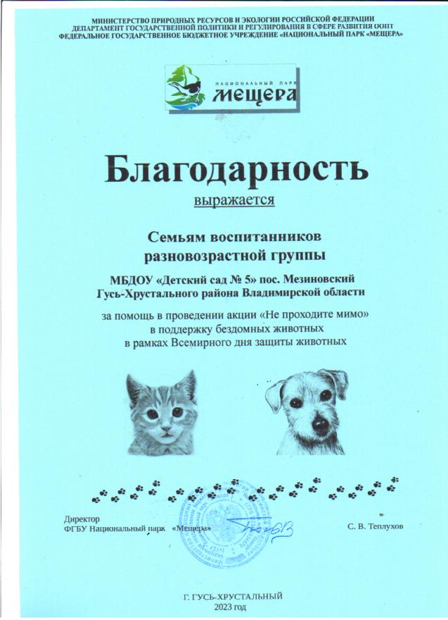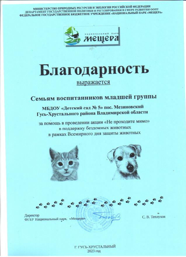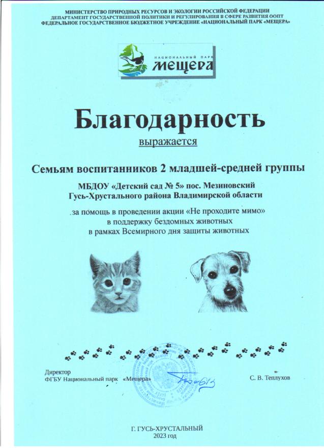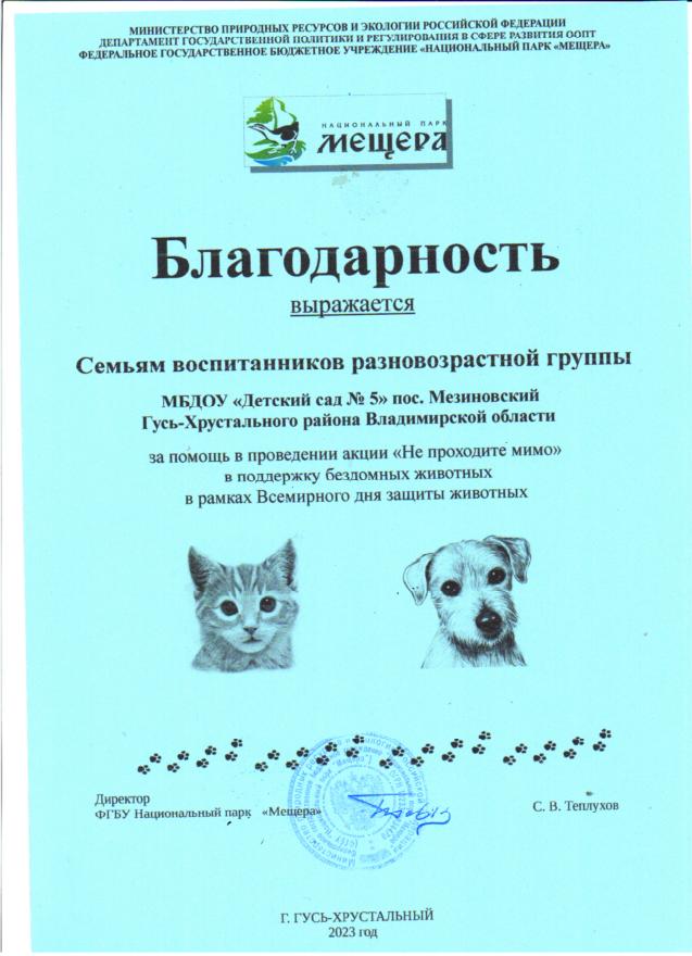 Участие педагогов, воспитанников и родителей в акции НП Мещера "Не проходите мимо", в поддержку бездомных животных