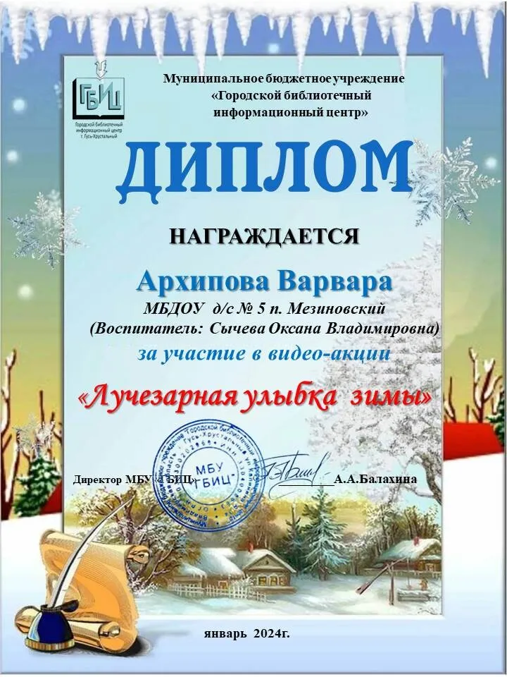 Участие воспитанников видео-акции «ЛУЧЕЗАРНАЯ УЛЫБКА ЗИМЫ», организованной ГБИЦ г. Гусь-Хрустальный