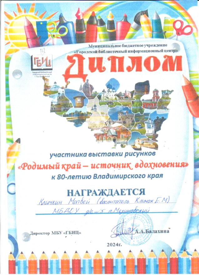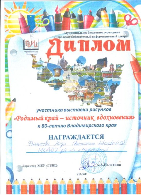 Участие воспитанников в выставке рисунков "Родимый край - источник вдохновения", организованной ГБИЦ г. Гусь-Хрустальный