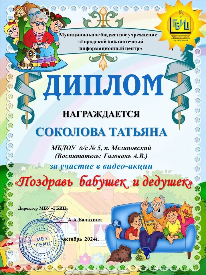 Участие в видео-акции "Поздравь бабушек и дедушек", ГБИЦ, 2024
