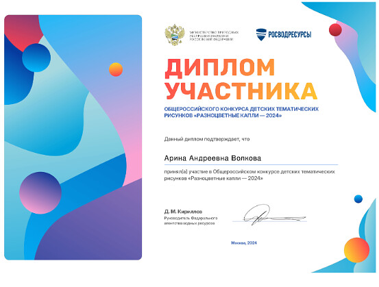Участие в Общероссийском конкурсе детских тематических рисунков "разноцветные капли - 2024"