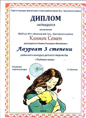 Участие воспитанников в муниципальном конкурсе детского творчества "Любимая мама" , организованного Отделом культуры и спорта администрации Гусь-Хрустального района и приуроченного ко Дню Матери.