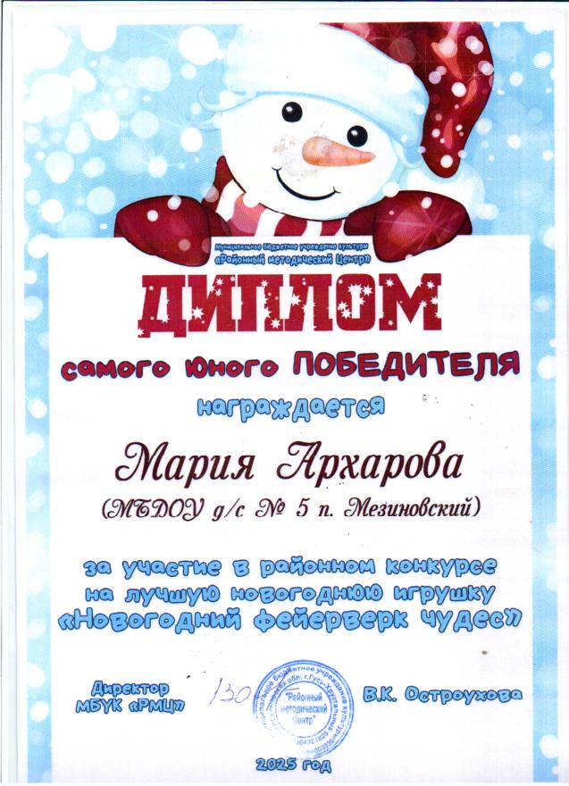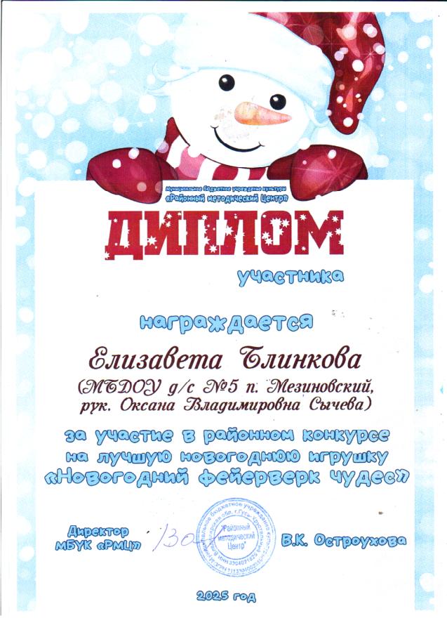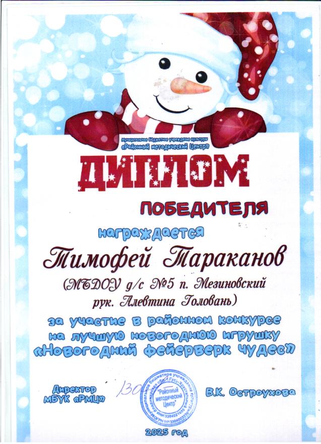 Результативное участие воспитанников ДОУ в районном Конкурс на лучшую новогоднюю игрушку «Новогодний фейерверк чудес», который организовал Районный методический Центр.