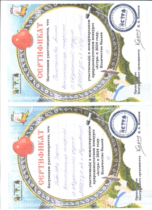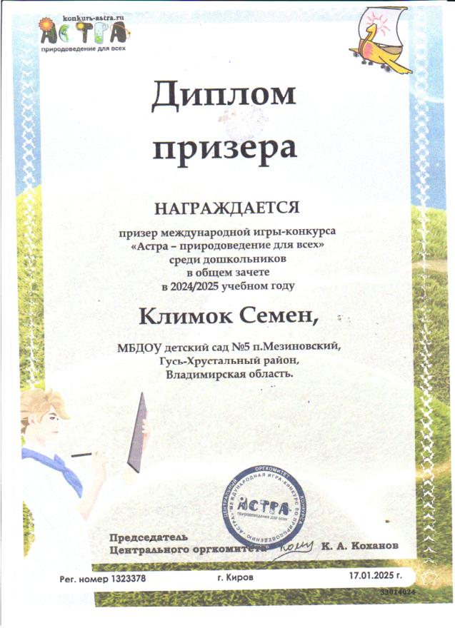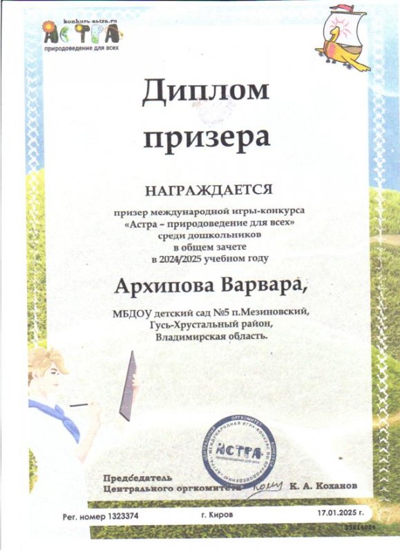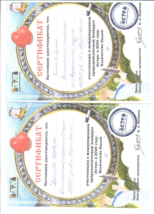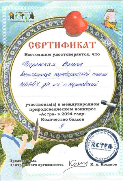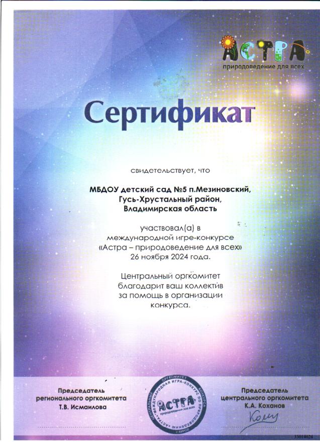 Участие воспитанников в международной игре -конкурсе среди дошкольников "Астра - природоведение для всех".
