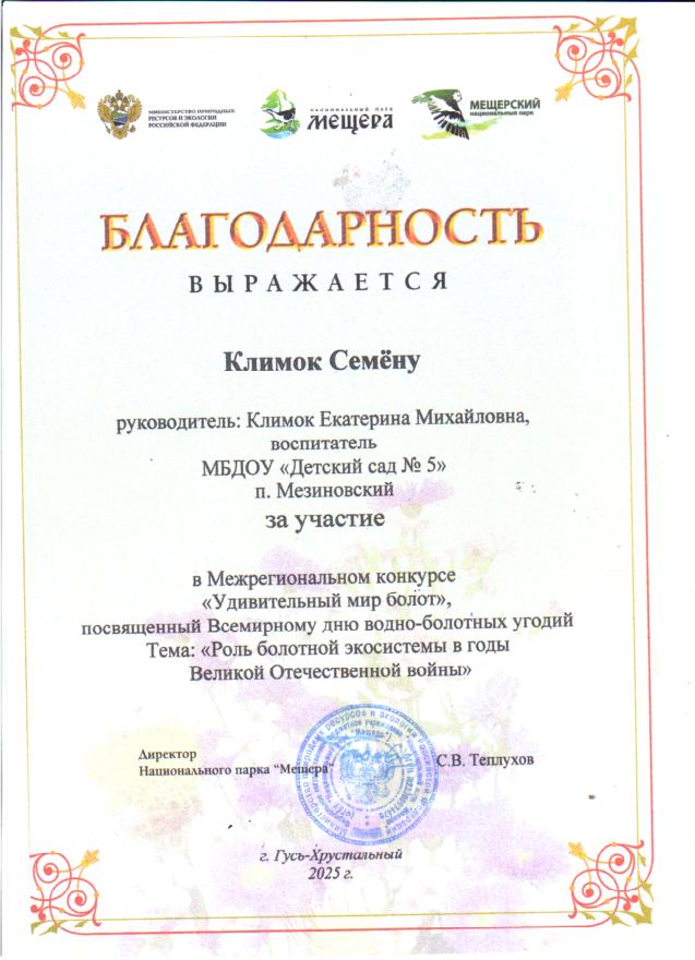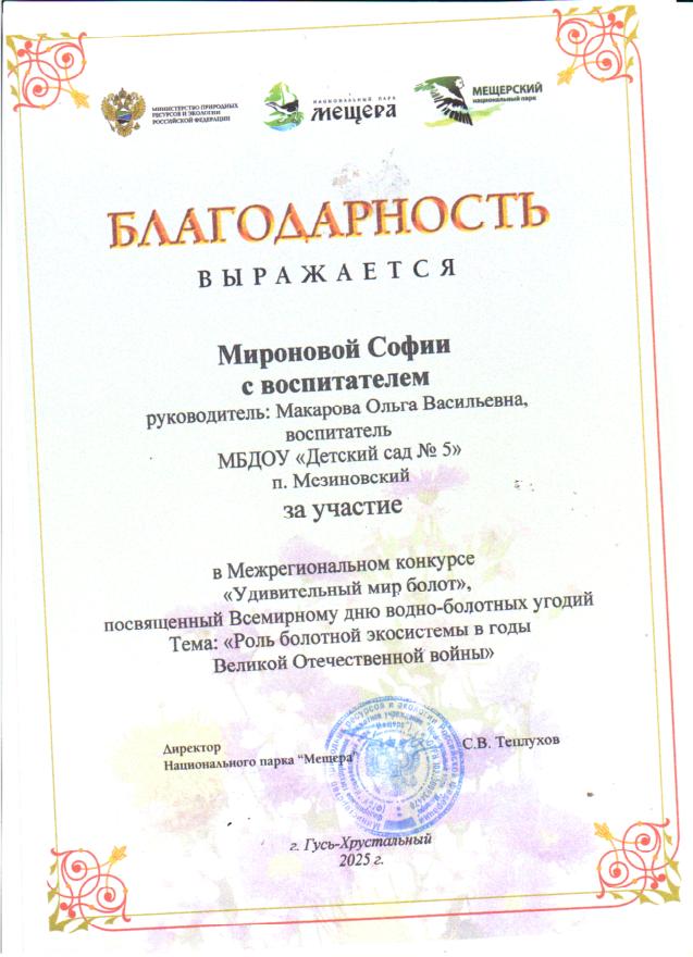 Участие в межрегиональном конкурсе "Удивительный мир болот", 2025