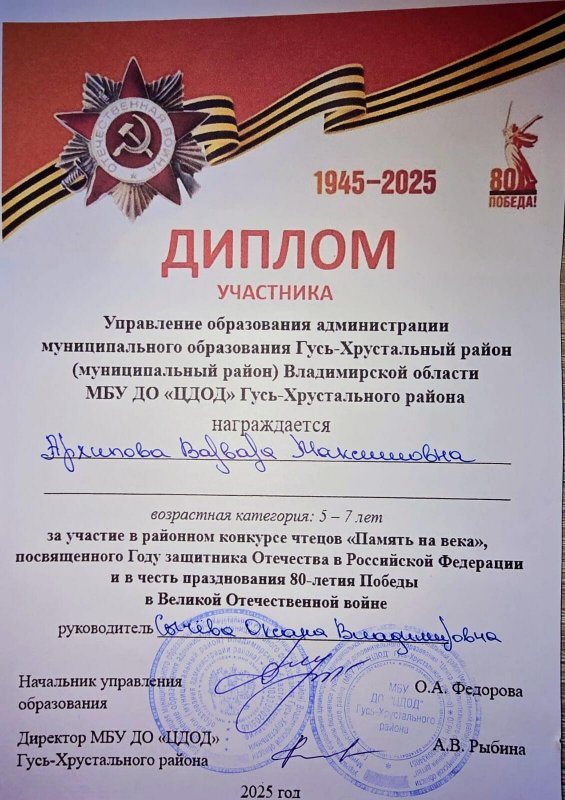 Участие в районном конкурсе чтецов "Память на Века", приуроченный к Году Защитника Отечества ????????в Российской Федерации и 80-й годовщине Победы в Великой Отечественной войне. !