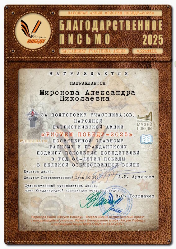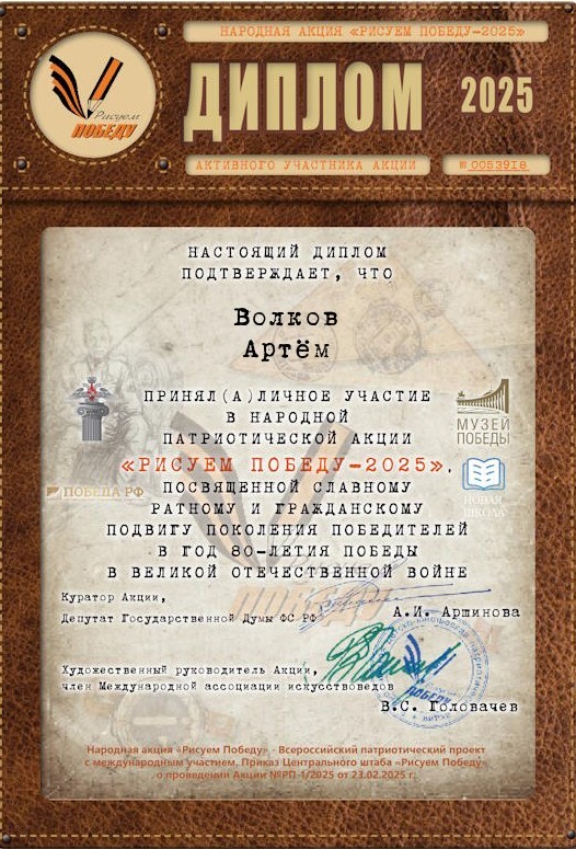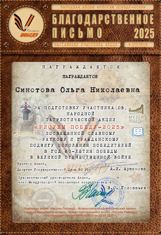 Участие воспитанников в НАРОДНОЙ АКЦИИ «РИСУЕМ ПОБЕДУ-2025» (Всероссийский патриотический проект с международным участием).